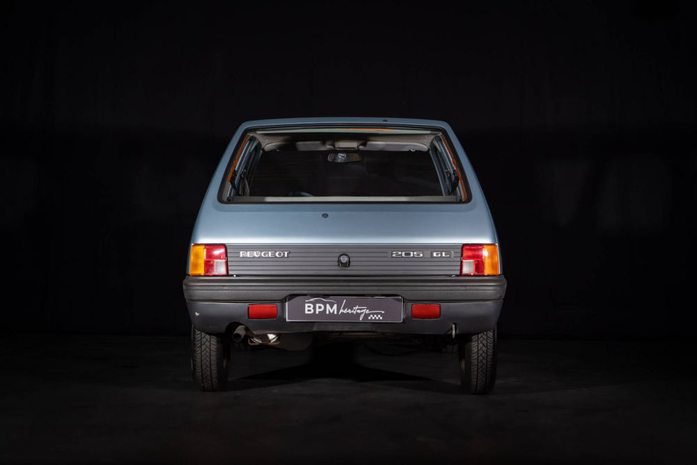 Le modèle présenté a été livré en France le 13 juillet 1983. Il s’agit d’une des premières versions de la Peugeot 205 puisque sa production a débuté le 23 février 1983. C’est une finition GL, ce qui correspond à une carrosserie 5 portes motorisée par le 1124 cm2 de 50 ch. Cette voiture représente la 205 à l’état brut, sans option à part la peinture métallisée. Son authenticité est touchante. Elle n’a parcouru que 44 000 kilomètres et n’a connu que deux propriétaires. Elle n’a roulé que sur des routes de campagne par beau temps et a toujours dormi dans un garage, ce qui explique son exceptionnel état. Il n’y aucune trace de corrosion ou d’usure. Tout est d’origine, y compris les optiques avant qui arborent sur leur dessus leur date de fabrication. L’intérieur en tissu est à l’état du neuf. L’entretien a toujours été effectué et permet aujourd’hui une parfaite utilisation. Cette 205 est le témoignage d’une époque révolue et nous rappelle sympathiquement à nos souvenirs d’enfants. On s’imagine, sur la route de l’école, serré entre quatre camarades de classe sur la banquette arrière. On se rappelle la troisième auto de la maison qui chaque samedi rentrait le coffre rempli de courses du supermarché ou peut-être encore celle qui, banquette arrière rabattue, transportait notre VTT à la fourche tordue après une chute brutale. On revoit probablement encore l’auto-école qui nous permit à dix-huit ans d’obtenir ce ‘’pass’’ tant attendu vers la liberté. Cette 205 entrouvre le livre de notre vie à ses meilleures pages et son charme désuet suscite en nous des émotions oubliées. Aujourd’hui, pour un budget raisonnable, elle vous permet d’accéder à l’univers de BPM Héritage et de bénéficier des mêmes prestations que pour le reste de notre gamme. Elle sera livrée à son futur acquéreur avec une garantie de 12 mois.