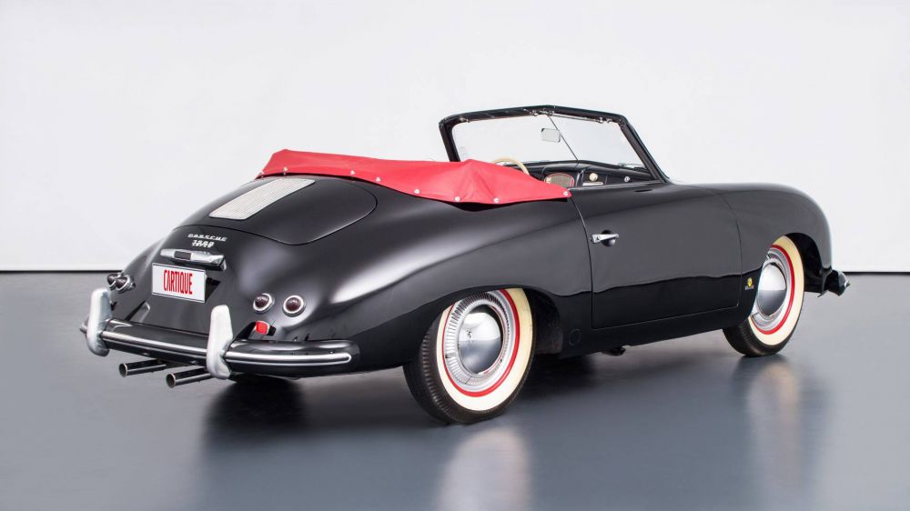 The  Porsche 356 1500 Super Pre A Cabriolet The first sports car to be developed and produced by Porsche and marketed under the Porsche name was already a sensation back in those days. The car could be purchased as a coupé or convertible from day one of the production. The first Porsche 356 can be recognized by the split windshield made of Sekurit glass with a divide down the middle. A one-piece windscreen was introduced in the model year 1952, but with a bend in the middle. In the standard version, the car was equipped with a continuous bench seat for driver and passenger, single seats were available on request. The Porsche 356 was built from 1948 to 1955 as a Coupé and Cabriolet with four engine types. The first series-produced car left the factory in Stuttgart on Maundy Thursday, April 6, 1950. Conspicuous features included, for example, the split windscreen and the permanent glazed rear windows. These could be opened during later years of construction. The radio antenna had a red tip, called red tipper. There was no Porsche coat of arms on the 356s - at least not during the early construction years, since it wasn’t designed until 1952/53. The name Porsche was therefore written on the front and rear of the car. The first vehicles had a white three-spoke bakelite steering wheel from Petri with a horn ring, which was replaced in the 356 A by a version with two spokes. The ignition was to the left of the steering wheel, at that time it still had a start button. There was no fuel gauge, so the fuel level could only be checked with a notched wooden stick, which had to be held vertically in the fuel tank. Nitro lacquer was used to paint the vehicles. The Porsche 356 1500 Super was the most powerful 356 of the pre-A series. Higher compression and other carburettors increase the output to 70 hp. Good aerodynamics also mean the 1500 Super can reach speeds in excess of 175 km/h. The 356 models of model year 1953 are equipped with larger brake drums and a synchronised gearbox, the patented Porsche synchronisation. A two-stage windscreen wiper system is available as an option. The Porsche emblem is now embedded on the horn of the two-spoke steering wheel. The price for the Coupé is DM 13,800 and for the Cabriolet DM 15,800. Only 1,593 convertibles of the 1500 Super version were built.