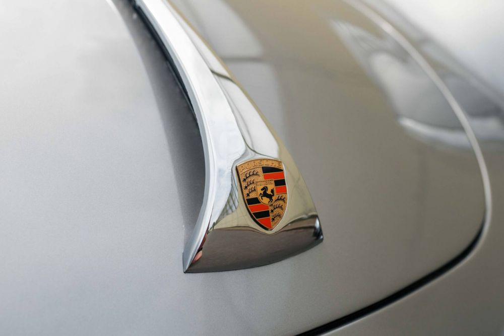 The owner gave a great deal of thought to the choice of body colour, a wonderful period silver grey, the high-grade olive-green leather for the interior, down to the slightly lowered stance of the car. The removal of the bumpers (available), just allows the wonderful curves of the Porsche 356 to be best seen.