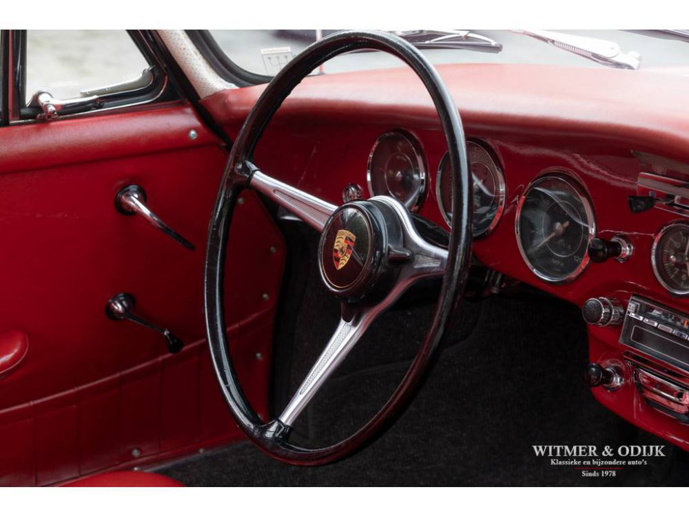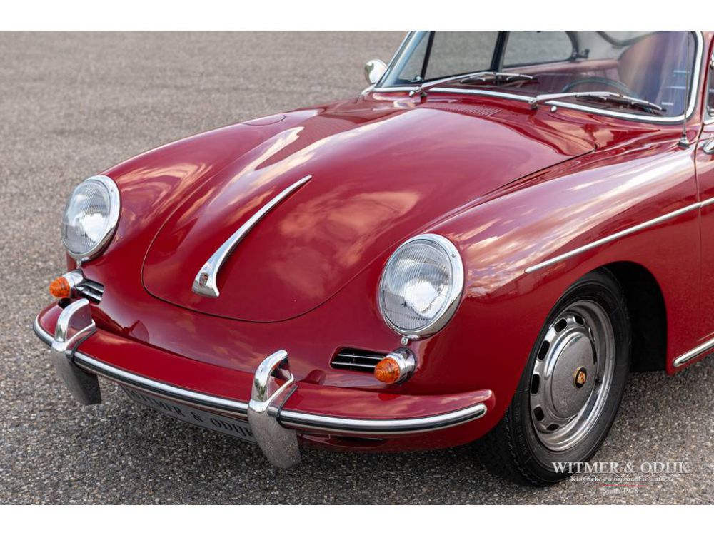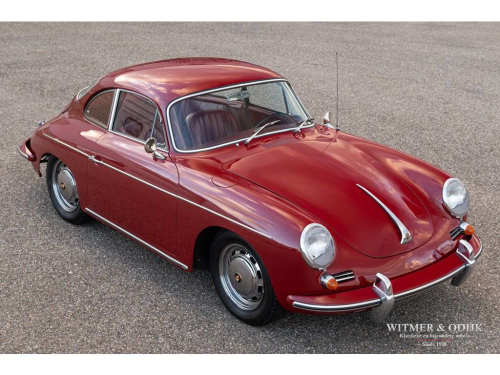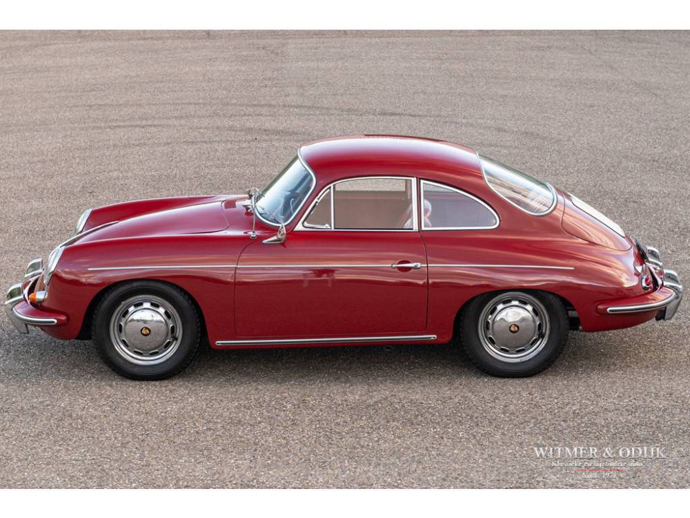 In 1964 verlieten na 17 jaar in productie geweest te zijn de laatste Porsche 356's de fabriek. De 356C was logischerwijs de meest doorontwikkelde 356 en heeft daardoor de beste rijeigenschappen. Meest bekende en waarneembare verbetering ten opzichte van de 356B betrof de vervanging van de trommelremmen voor schijfremmen. Onderhuids echter verbeterde meerdere zaken die het weggedrag ten goede kwamen, een zwaardere stabilisatorstang voor, een versterkte verbinding tussen het stuurhuis en de stuurkolom en tal van kleinere aanpassingen aan ophanging en onderstel. De auto kreeg standaard meer motorvermogen, de versnellingsbak werd gesynchroniseerd en bijvoorbeeld de ontwaseming van de voorruit werd aanzienlijk verbeterd. Praktischer werd het benzine tanken, niet langer hoefde de gehele voorklep geopend te worden dankzij het aanbrengen van een gebruiksvriendelijk benzineklepje. Interessante wetenswaardigheden, belangrijker voor de meeste klassiekerliefhebbers is het prachtige iconische ontwerp van de 356 en het rijplezier wat de auto ondanks haar hoge leeftijd nog steeds kan verschaffen. Zeker in een goed en origineel exemplaar als deze 356C beleefd u dankzij de sfeer, rijeigenschappen en prestaties optimaal rijplezier. De prachtige Karmin rode kleurstelling in combinatie met het nog mooi glanzende chroom geven de auto een warme en klassieke uitstraling. Prettige bijkomstigheid is dat de waardeontwikkeling van de 356 al jaren positief is en de vraag nog steeds toeneemt. Leuker kan ik het niet maken. Deze 356 C werd nieuw verkocht in Californië USA, de zgn. 'black plates' uit de jaren zestig zijn nog bij de auto aanwezig. De herkomst van de auto is bijna een garantie voor het roestvrij zijn, in dit geval is dit ook zo. De auto is louter om cosmetische redenen eens nieuw gespoten in de originele kleur Karmin Rot. Het chroomwerk is in een zeer fraaie diep glanzende conditie. De carrosserie is nooit gedemonteerd geweest, derhalve heeft de auto perfecte passingen. De auto heeft als bijzonderheid de originele 'terug in de tijd' uitstraling. Bij deze 356 C zijn een indrukwekkend aantal onderhoudsfacturen aanwezig. Slechts 1900km terug werd de motor compleet nieuw opgebouwd, het betreft hier de originele 'matching' motor. Sinds 2012 is de auto in bezit van één eigenaar/verzamelaar uit Luxemburg. De auto is Porsche Classic onderhouden en rijdt dientengevolge zoals ze ook nieuw in 1964 reed. De verkoopprijs is inclusief Nederlands kenteken in 'oud blauw'. Zie onze website voor meer dan 100 foto's www.witmerodijk.nl of u gebruikt de volgende link, https://witmerodijk.nl/te-koop/porsche-356-c-coupe-1964/2228