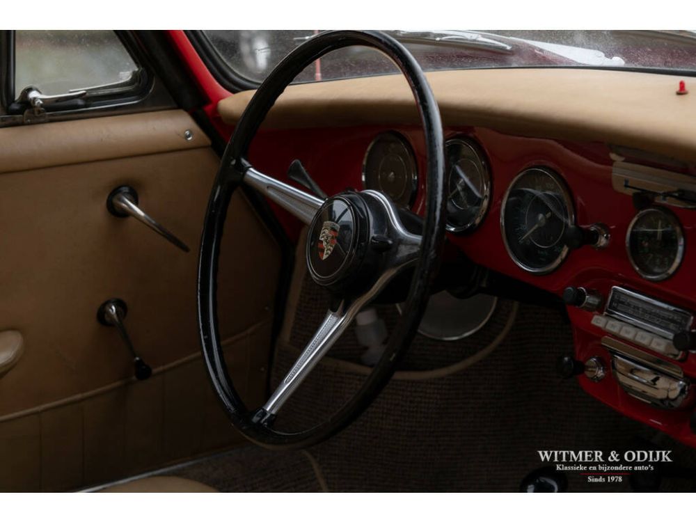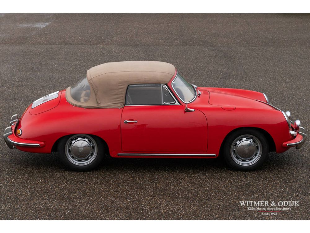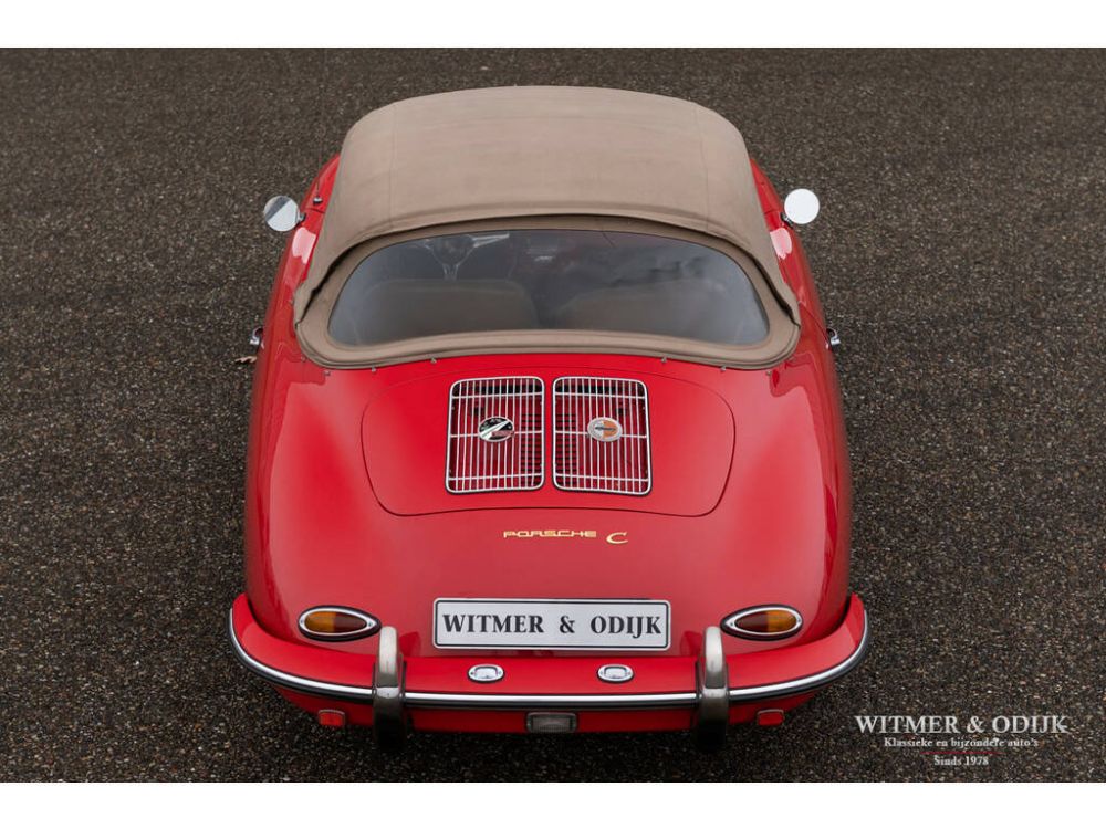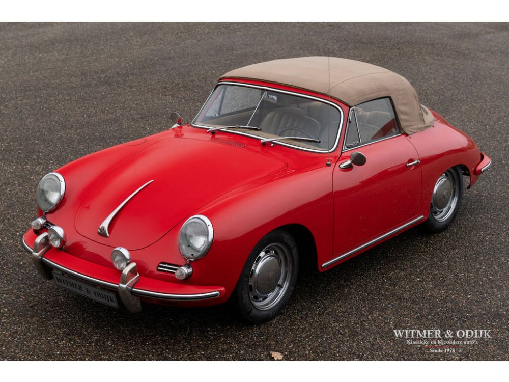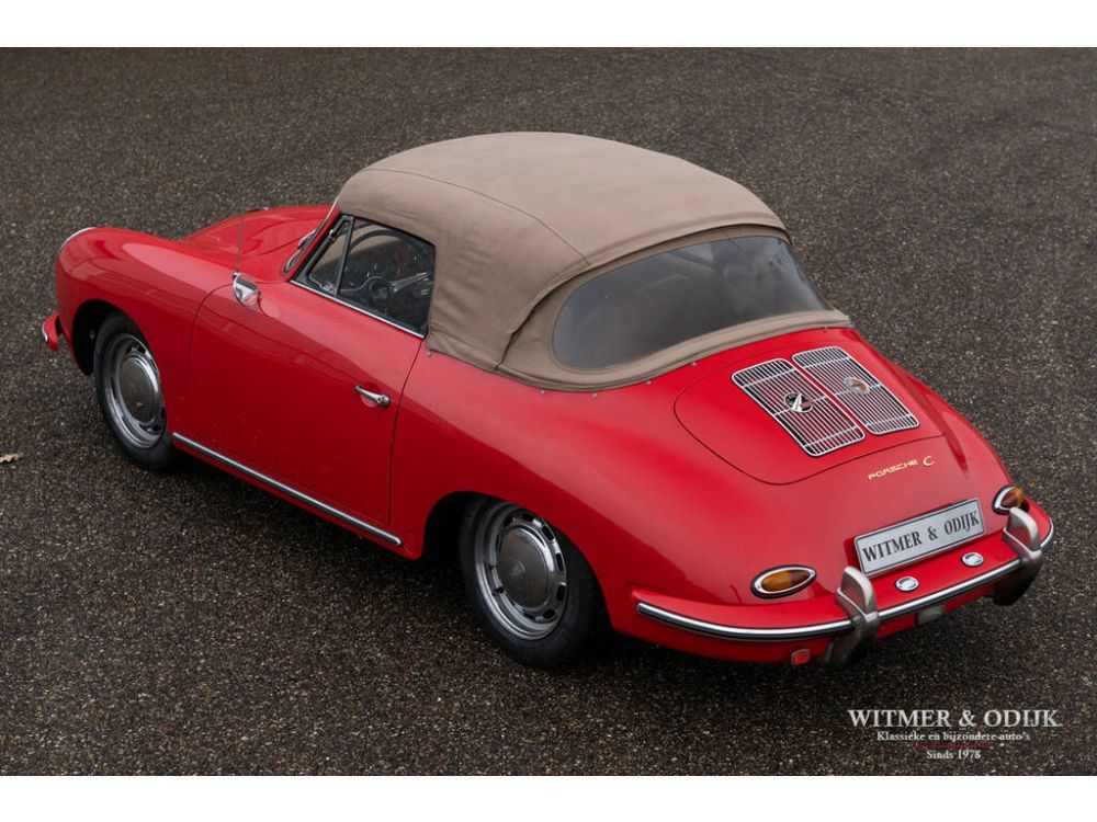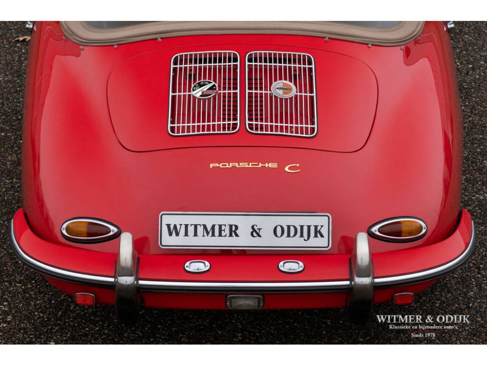 De zeldzaam fraaie creatie van Ferdinand Porsche is in de Cabriolet versie een van de meest iconische en geliefde auto-klassiekers op aarde. Uit de verbeterde C-serie van de Porsche 356 is deze Cabriolet afkomstig. Als logische opvolger van de B-serie onderging de auto een aantal optische en technische verbetering en veranderingen die vooral werden ingegeven door veiligheidseisen uit Amerika. Tegelijkertijd werd de auto ook technisch aangepast en dat verbeterde merkbaar het rijgedrag. In de C versie kreeg de auto 75pk mee, in combinatie met het geringe wagengewicht maakte dat de 356 tot een heerlijk soepele en snelle sportwagen. Ook werden bijvoorbeeld rondom schijfremmen aangebracht. Optisch een lust voor het oog, technisch vooruitstrevend en zeer betrouwbaar. Ook anno nu wint de aantrekkingskracht van een 356 het van welke exotische sportauto ook. De bouwwijze van toen, bestaande uit aan elkaar gelaste en vertinde plaatwerkdelen die alleen in kleur gespoten en dus min of meer onbeschermd de fabriek verlieten, maakt dat een roestvrije en goed gerestaureerde 356 lastig te vinden is. Het hier aangeboden exemplaar kwam al in 1996 naar Nederland. Ze kwam in handen van een Nederlandse, inmiddels 84 jarige, eigenaar, ex. boordwerktuigbouwkundige op de Boeing 747. Hij restaureerde de carrosserie in de jaren negentig samen met zijn vriend Theo Siemerink in IJmuiden, inmiddels een hoog aangeschreven 356 specialist. Dankzij deze vakkundige restauratie is de auto keihard en nog steeds roestvrij. Als enthousiast 356 clublid werd menige (buitenlandse) toerrit ondernomen met deze cabriolet. Het laat zich raden dat de techniek altijd tot in detail in topconditie werd gehouden door de technisch zeer begaafde eigenaar. Hij hielp onderweg alleen mede-clubleden weer op pad.. Deze nieuw in Californië verkochte 356 is door de eigenaar altijd behandeld als een echte rijders auto, betrouwbaarheid en een gezonde carrosserie stonden daarbij centraal. De inmiddels op leeftijd geraakte eigenaar vond een auto in concours conditie minder sfeer bieden dan een 'mooi oud geworden en zichtbaar gebruikte 356', exact zoals hij er in 2021 zelf aan toe was toen hij mij verzocht de auto voor hem te verkopen. De 356 werd hem fysiek de baas, vandaar het verzoek om de auto met pijn in het hart door onze bemiddeling te verkopen. Gezien de geweldige staat van de carrosserie, de gereviseerde motor en rijeigenschappen verkocht ik de auto aan een goede klant namens de trotse eigenaar. Hij wist de auto terwijl ze slechts één week online stond goed op waarde te schatten. In deze prijsklasse kon hij geen betere vinden, hij zocht destijds al langer. Recent besloot de huidige eigenaar een ander huis te kopen, een aanzienlijk kleinere garage noodzaakt hem nu om o.a. deze 356 te moeten verkopen. Met pijn in het hart. Inmiddels had hij de auto voorzien van nieuwe (originele) carburateurs zodat ze perfect rijdt. Bij de auto zijn aanwezig een fotoreportage van de restauratie en motorrevisie, de Porsche 'Wagenkarte' waar o.a. het motornummer (matching) is vermeld. Nog uitgebreidere informatie over de achtergrond van de auto verschaffen we u graag tijdens een bezichtiging. Zie onze website voor meer dan 100 foto's www.witmerodijk.nl of gebruik de volgende link, https://witmerodijk.nl/te-koop/porsche-356-c-cabriolet-1963/2421