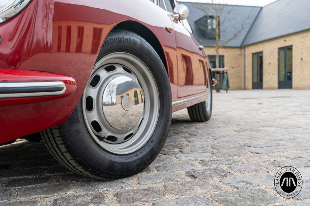 This 356 C is the last generation of the 356 and comes with disc brakes, a large 1600 engine, dual cooling grilles at the rear, and other fine details that were changed from the 356 B.