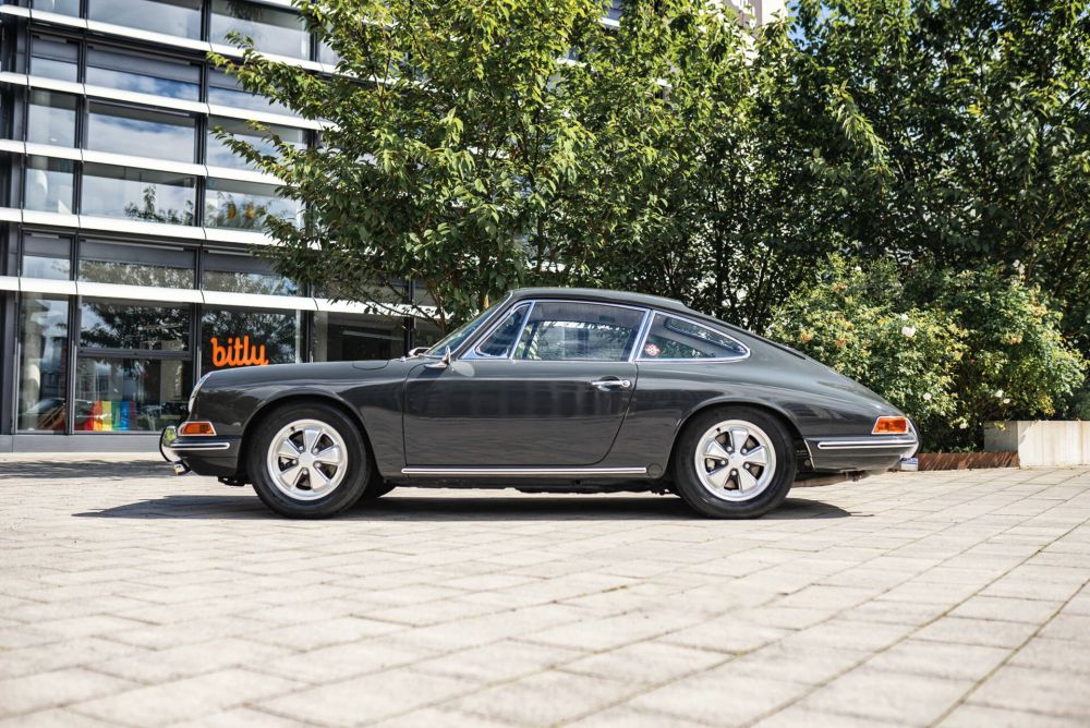History – Our Porsche Kardex Data Sheet reveals that this 1967 Porsche, bearing chassis number 307664, rolled off the production line in February of that year. Initially ordered by Mr. Stephen Perlbinder of Bea-Tay Corporation in New York, it arrived in the United States in March 1967. The data sheet highlights the car's high specifications for the period and confirms that our fully restored example retains its original matching numbers for the chassis, engine, gearbox, and body frame. This remarkable vehicle was featured in an article by Adam Wright for American Porsche 911 Magazine. Wright noted that the car was once considered for parts mixing with another vehicle before being salvaged and transported to Germany for restoration. The restoration process is comprehensively documented, including numerous restoration invoices, videos, and culminating in a stunning glossy presentation book that showcases the car's transformation. Exterior – Finished in the elegant Slate Grey (Schiefergrau), color code 5501B, this 1967 Porsche boasts a glossy, high-end finish that is a testament to the meticulous restoration process. The restoration images below confirm the extensive work undertaken to achieve this stunning look. The Kardex Data Sheet confirms that the original owner specified front fog lights, front and rear bumper protectors, and the now-iconic Fuchs alloy wheels, all of which have been carefully restored or replaced to maintain the car's authentic appearance. **Interior **– The Kardex lists a number of interior options that looks like the first owner was targeting the S model, but without the higher powered engine. The correct combination of immitation and full leather have been applied to the restoration, along with the correct wooden steering wheel and loud speaker antenna. Sadly, the original Blaupunkt radio gas been replaced with a period appropriate model which still looks the part. * The currently indicated 3,728 kilometers are what was registered on the original MPH tachometer. **Engine & Transmission – **Supporting invoices confirm that we are offering a complete engine and gearbox overhaul of both factory fitted units: engine number 911 396 and 4 speed Gearbox number 200264-902-0. Along with dozens of invoices it’s all neatly displayed in the cars phot—album presentation book. Wheels & Tyres – The wonderful Fuchs alloy wheels are beautifully restored and are housed within Vredestein 165/15 new tyres.