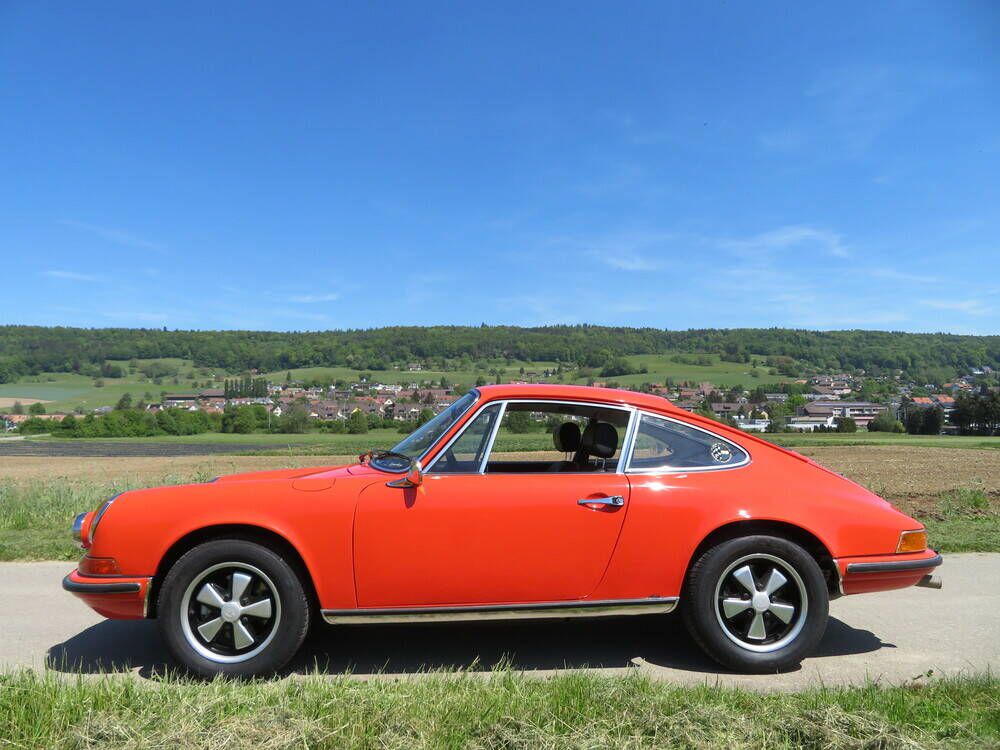 Dieser wunderbare Porsche 911 E befindet sich in Sammlerzustand! Er wurde im Frühling 1969 an den 1. Besitzer durch die Firma Sonauto Paris ausgeliefert. Sogar die Kaufrechnung von 1969 ist noch vorhanden! Viele Jahre war der Wagen in gleichem Besitz, bevor er dann 20 Jahre in eine Sammlung ging. In Deutschland bei einem neuen Besitzer wurde die Technik von einem Spezialisten (Roock) überholt und im gleichen Zuge wurde die Lackierung erneuert (selbstverständlich in der Originalfarbe Blutorange). Vor etwas mehr als 10 Jahren kam der Wagen in die Schweiz und wurde sorgfältig gefahren und weiter gepflegt. All dies geht aus der hervorragenden Dokumentation hervor - inkl. Bestätigung matching-number. MFK 6.2020 Veteran. Ein Traum zum Fahren! Die originalen Sitze sind vorhanden und werden mitgeliefert.