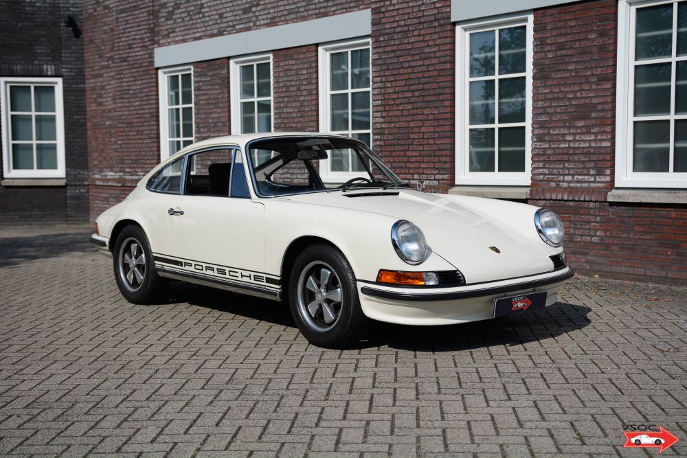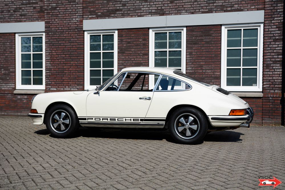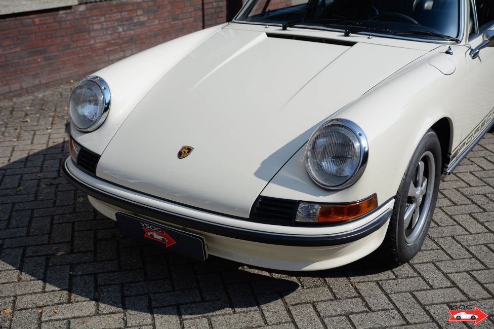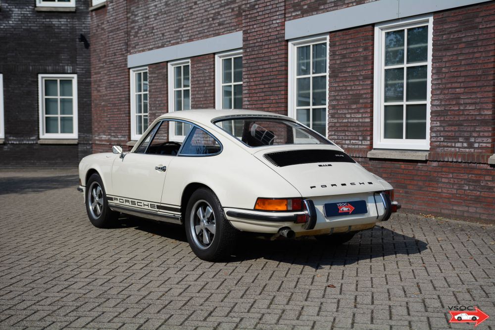 A lovely restored example of a classic Porsche which was sold new in Verona Italy. The car remained in Italy and after a period in Pavia the car arrived in Holland in 2004. The car features an S package (all instruments and steering wheel), an S front spoiler and is finished in classic Elfenbein white (Originally the car was a rare color Seeblue). The enthusiastic owner had a lot of detail work done to the car at a well known Porsche specialist. In 2008 the car changed hands and entered in a large Porsche collection and in 2009 the car was restored and repainted at a well known Porsche specialist. The engine was partially rebuilt, the cylinder heads rebuilt, the gearbox rebuilt, the brakes rebuilt and a complete new stainless steel exhaust system fitted. In the interior the leather seats were retrimmed and new original carpets fitted as well as a new headlining. In 2019 the Porsche Classic centre gave the car some good attention and had the Fuchs alloy wheels restored with correct Pirelli CN 36 tyres, the dynamo rebuilt, new fuel lines, new wiring in the engine bay etc. etc.
