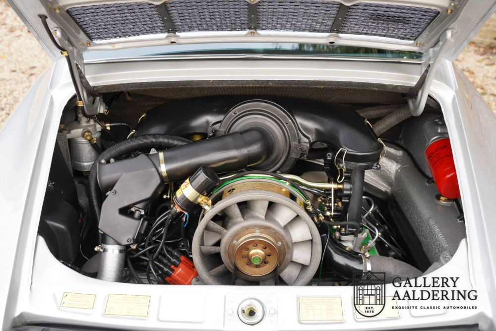 A very special 1972 911 'Ölklappe,' which was kept in storage for several decades before being fully and meticulously restored with only original Porsche parts and entirely to factory specification. So, this silver-gray Porsche is a rarity.
