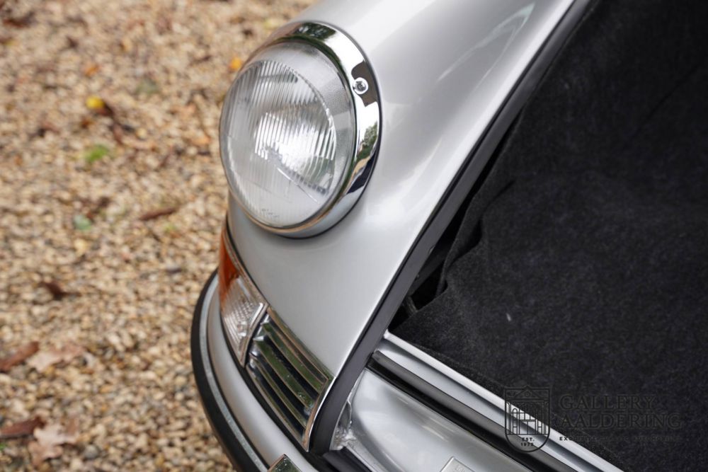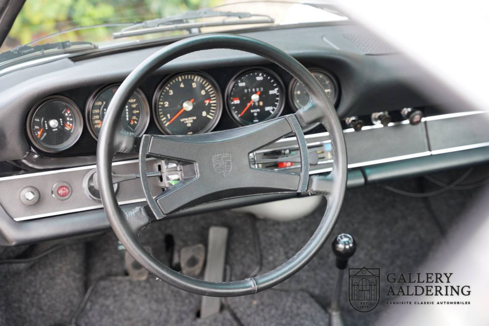 In the mid-1980s, this car disappeared into a barn, only to emerge in 2014. Still in a completely original, untouched condition, the 911 surfaced out of the barn, even with the original Fuchs spare wheel under the front hood. The car then arrived in the Netherlands, and once the official Porsche documents confirmed the car was entirely original, including the original 15 Fuchs wheels and even the original optional Koni shock absorbers, and matches in terms of color and engine number, an extensive restoration began. Of course, the car was repainted in its original colour, colour number 925.