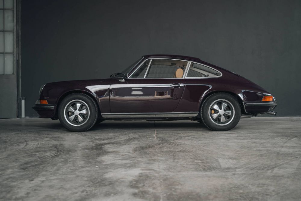 This 1973 Porsche 911 S is a stunning example that was subject to a comprehensive restoration, which was completed about one year ago. Finished in its original color of Aubergine, this car presents in exceptional condition throughout and its slightly obscure color looks great - especially when paired with the significant brightwork found on these early cars. As it is one of the later “long hood” 911s, it did receive the slightly more pronounced bumper overriders, but, these do a great job of keeping the freshly restored car safe from wayward parkers who would otherwise destroy your fresh paint. Up front, a sporty-looking “S” air dam helps keep the nose down, and the famous 5-spoke Fuchs wheels tie the whole look together.