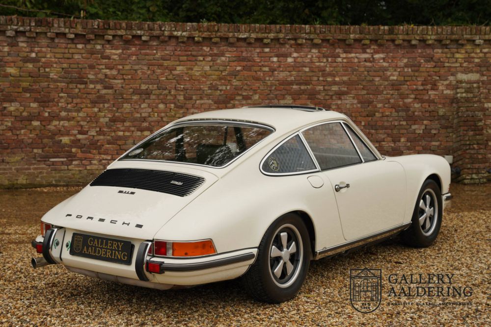 This Porsche 911 2.4 S is a rare specimen, meticulously restored and overhauled with attention to detail, featuring some of the most coveted options of its time. Originally delivered new in Paris, this 911 projects are high quality appearance with its original Hellelfenbein (Ivory) color and a tasteful black leather interior. It is a treat to have such a great Porsche in our collection.