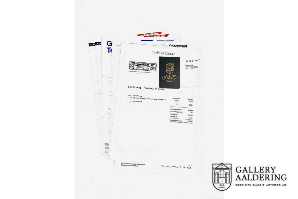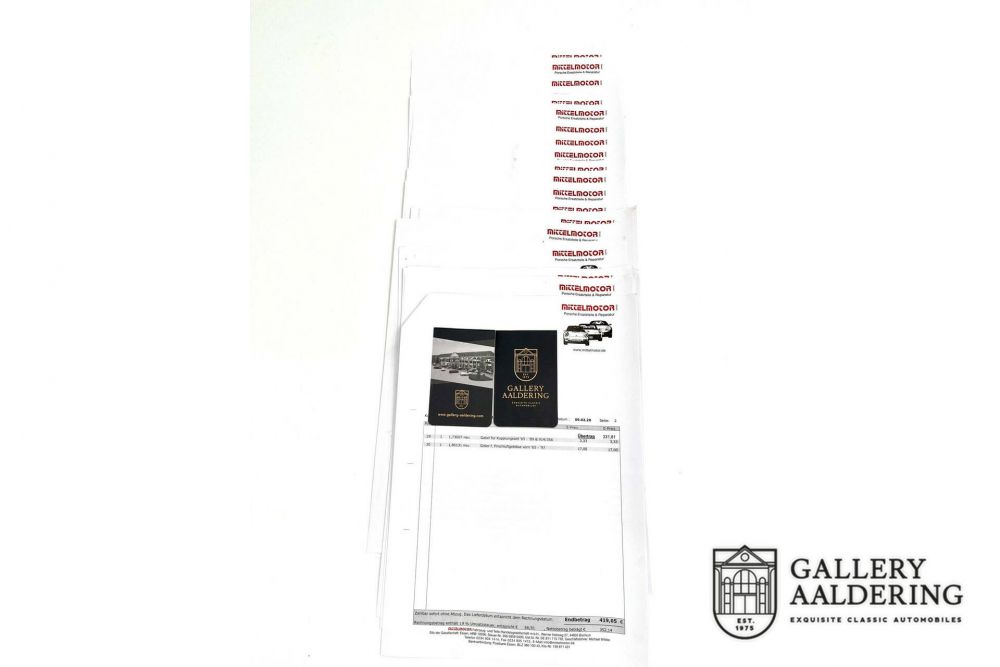 This Porsche comes with comprehensive documentation that supports its unique history. Included with the car is a folder containing numerous documents, such as the original manual, old registration papers, a FIVA passport from 2000, and multiple invoices detailing the extensive maintenance work and restorations at a very detailed level. Recently, this 911 underwent a major service at a Porsche dealer, with all invoices available for review.