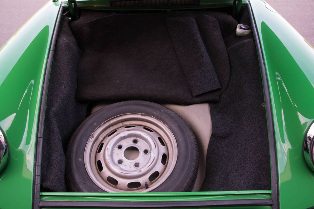 This 911 2.4T coupe, is one of the last year produced F-models in 1973. Factory-delivered in vipergreen does this original, unrestored beauty still wear most of its 1st paint today. Even the interieur ist completely untouched in an very good condition. It only shows an one inch crack on the dashboard around the loudspeaker and two of them in the sky. The floors are in untouched very good condition, still wearing the original factory-sealing.