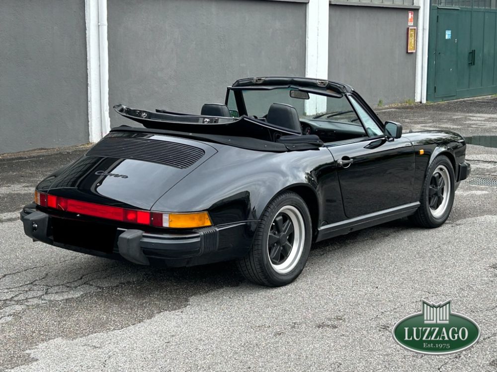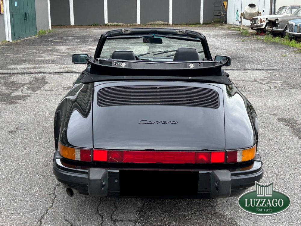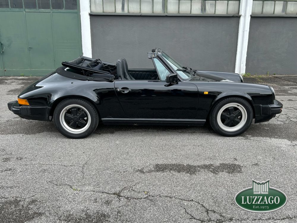 Offriamo Porsche 911 3.2 Carrera Cabriolet con cambio aggiornato G50 del 1990, una delle ultime 3.2 costruite prima dell'arrivo della versione aggiornata 964. Carrozzeria e verniciatura in buonissime condizioni, interni in pelle nera ottimamente conservato. Motore e meccanica in ordine. Capottina elettrica, finestrini laterali elettrici. Revisione periodica in scadenza a Maggio 2027. Targhe e libretto di seconda immatricolazione con provincia Pesaro, già targa prima immatricolazione Chiasso. Iscritta con attestato ASI.