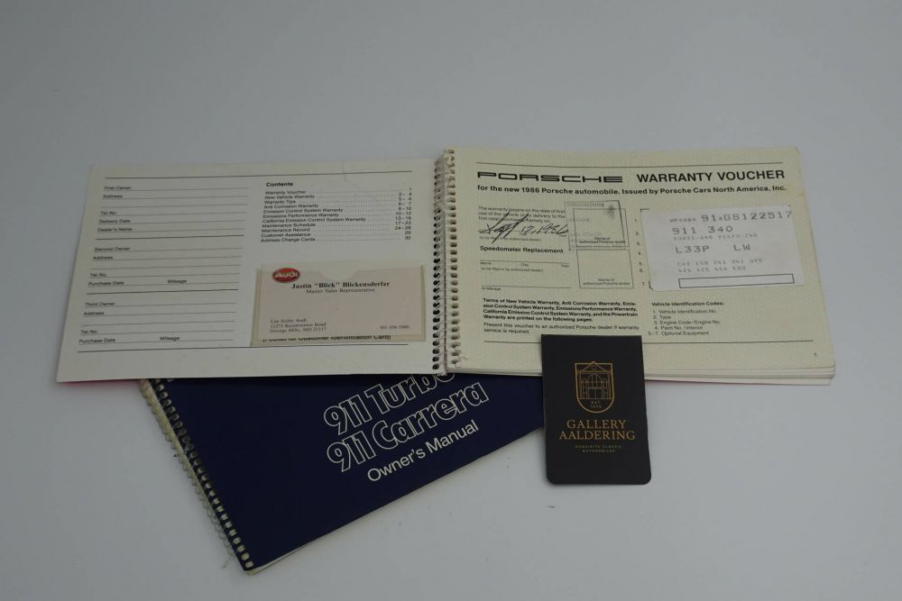 Our example is a beautiful and original Porsche 911 3.2 Carrera from the second owner, equipped with a sunroof and matching numbers. This car was delivered new on September 12, 1986, by Len Stoler Porsche in Maryland, USA. The car has only 101,287 miles on the odometer. From day one, the car has been carefully maintained and well-documented. Many invoices, including the original car card and the first purchase receipt from September 26, 1986, are present. The original service and instruction booklets are also with the car.