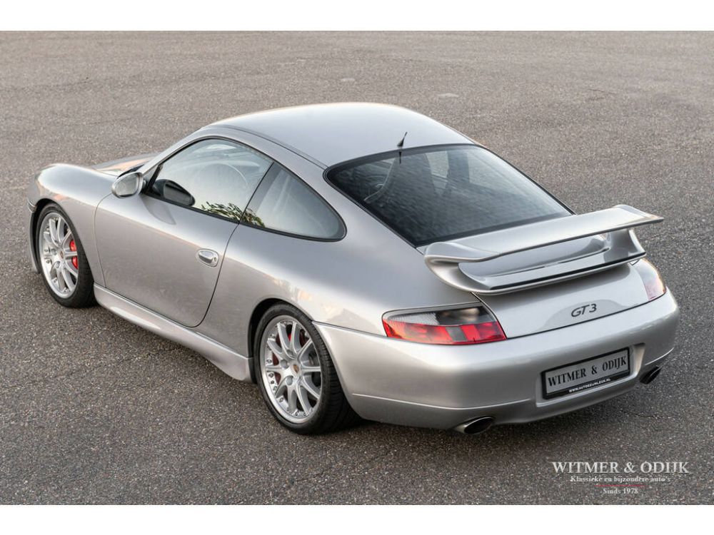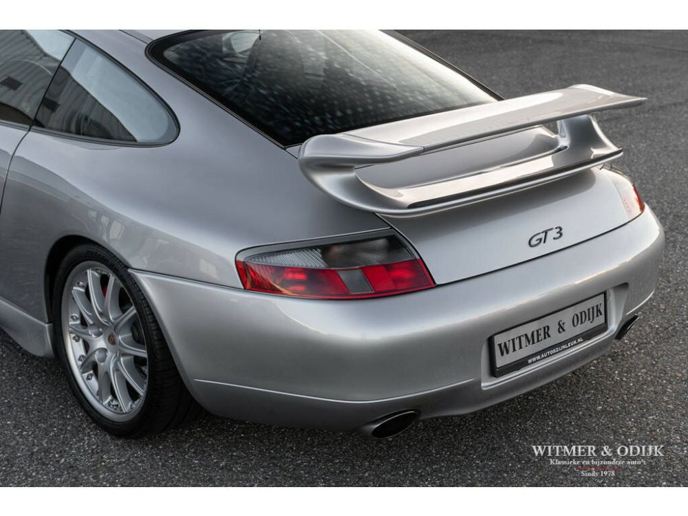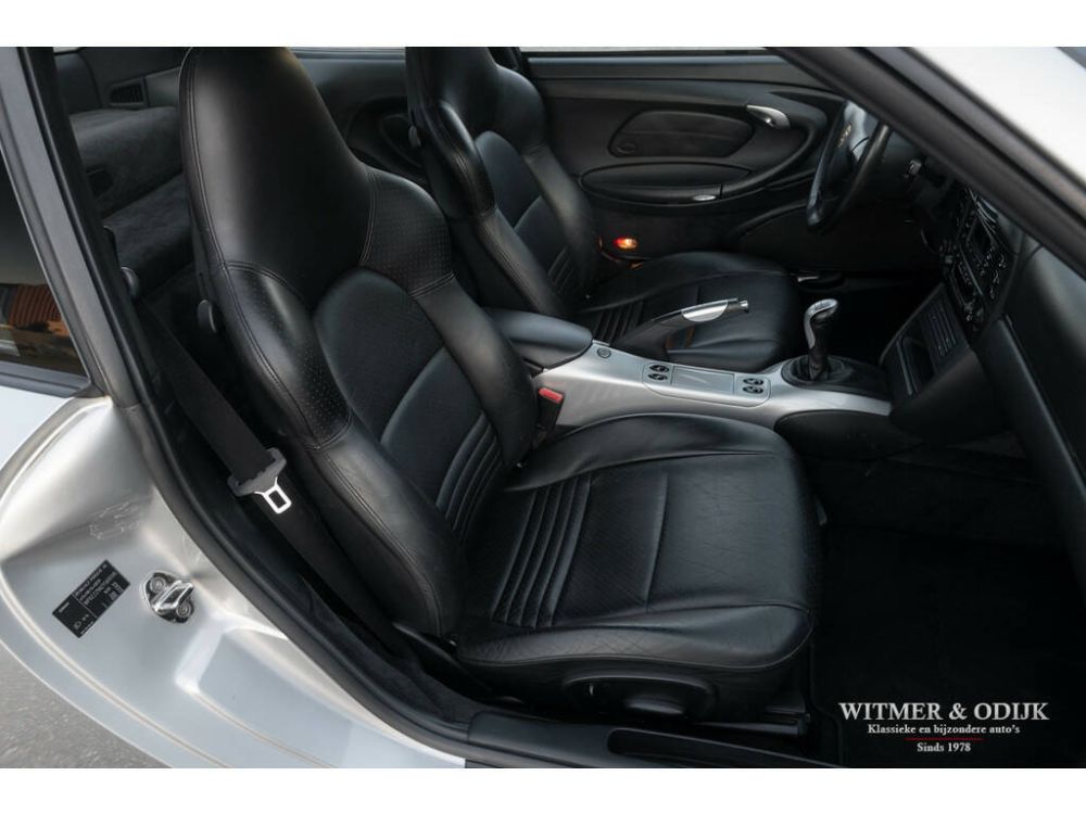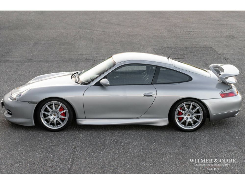 Naast de voor de openbare weg bedoelde 911's bouwde Porsche vanaf de zeventiger jaren altijd gelimiteerde series die feitelijk bedoeld waren voor het circuit. Zo zijn er bijvoorbeeld de legendarische 2.7 Carrera RS, 911 3.2 Clubsport, 964 RS en 993 RS. Door het zoveel mogelijk 'uitkleden' van de auto's en het toepassen van verlaagde onderstellen werden de rondetijden ten opzichte van standaard auto's sterk verbeterd. Bij het verschijnen van de watergekoelde 911 waren de algemeen gestelde veiligheidseisen aan moderne auto's zo sterk toegenomen dat men niet alleen meer middels gewichtsbesparing hogere prestaties kon verwachten. Zaken als airbags, ABS en verstevigingsbalken in de deuren voegen nu eenmaal kilo's toe. Reden voor Porsche om, terwijl de auto uiteraard zo licht mogelijk bleef, het motorvermogen flink op te krikken. De 996 GT3 MkI bracht 360pk op de achterwielen, dat is ruim 60pk meer dan een standaard 996. Zonder zaken als Traction Control of PSM zijn de 996 GT3's auto's die je niet even aan je neefje uit moet lenen tenzij die toevallig een racelicentie heeft. Gevallen van serieus Auw! zijn legio en daarom is bij het kopen van deze 'droomauto' enige waakzaamheid geboden. Tegelijkertijd is het volgens insiders daarom wel de allerleukste GT3 serie en zijn de prijzen de laatste jaren fors stijgende. Het hier aangeboden exemplaar is een originele, zuivere en schadevrije auto die mede gezien de beperkte productie een verantwoorde investering genoemd mag worden. De 996 GT3 MK1 is de originele en meest pure GT3. Opties betekenen gewicht dus daar wil je er niet teveel van aan boord hebben. Deze 996 GT3 houdt het beperkt tot automatische climat control, elektrische ramen, centrale deurvergrendeling met afstandsbediening, soundpakket in de deuren, boordcomputer en een originele Becker radio/cd speler met navigatie. De carrosserie in het bekende Arktissilber Metallic is volledig origineel en schadevrij. Om cosmetische redenen werd het linkerscherm net achter de deur een keer gespoten. De auto heeft geen noemenswaardige gebruikssporen of steenslag. Als gevolg van garagestalling was de lak niet onderhevig aan weersinvloeden en heeft ze een mooi diepe glans. Alle carrosseriedelen zijn origineel en rondom zijn de van fabriekswege aangebrachte beschermstickers keurig aanwezig. Ook de in de wagenkleur uitgevoerde bumpers zijn vrij van steenslag of parkeervegen. Rondom origineel glas zonder steenslag. De 996 GT3 was de laatste door Porsche Motorsport met de hand gebouwde auto en dat is in kleine details fraai terug te zien. Ook in de waardeontwikkeling van deze serie. Deze GT3 is voorzien van zgn. comfortstoelen met harde schalen als leuning. Bekleed met zwart leer, geen zichtbare gebruikssporen hierop en nog in de originele vorm. Het dashboard en deurpanelen zijn bekleed met zwart, dubbel doorgestikt, leer. Alles in het interieur is onbeschadigd en ademt de sfeer van originaliteit. Op de vloer originele Porsche matten. Alle schakelaars, hendels en klokken mooi schoon, onbeschadigd en goed afleesbaar. De 996 GT3's kregen als laatste watergekoelde Porsche's het als zeer betrouwbaar bekend staande 'Mezger' onderblok mee. Een motorontwerp van de hand van de bekende ingenieur Mezger wat bijvoorbeeld ook in de 700pk sterke GT1 Le Mans auto werd gebruikt. Een 'bulletproof' motor dus. In de GT3 brengt de motor 360pk op de achterwielen via het limited-slip-differentieel. De motorruimte van deze GT3 ademt absolute nieuwstaat uit. Ook de kofferruimte lijkt nieuw en is geheel onbeschadigd. Hier de CD wisselaar, onder de laadvloer het boordgereedschap en onder de klep de originele optiesticker. De originele tweedelige 18 inch GT3 velgen zijn in nieuwstaat. De Pirelli P-zero banden hebben de juiste N-codering en zijn in uitstekende conditie. In 2000 werd deze GT3 nieuw verkocht door een Duitse Porsche dealer. Al in 2006 werd ze door een collega Porsche specialist naar Nederland gehaald. Uit het originele serviceboekje blijkt dat de auto altijd zorgvuldig werd onderhouden door een Porsche dealer of specialist. Bij de auto zijn alle originele bescheiden, servicehistorie en reservesleutels. Wordt rijklaar afgeleverd inclusief nieuwe APK, garantie en onderhoudsbeurt. Zie onze website voor meer dan 100 foto's www.witmerodijk.nl of gebruik de volgende link, https://www.witmerodijk.nl/te-koop/porsche-996-gt3-mk1-'00-88.000km/2481