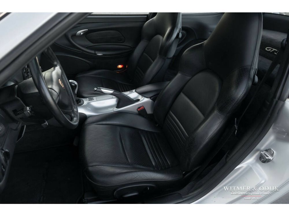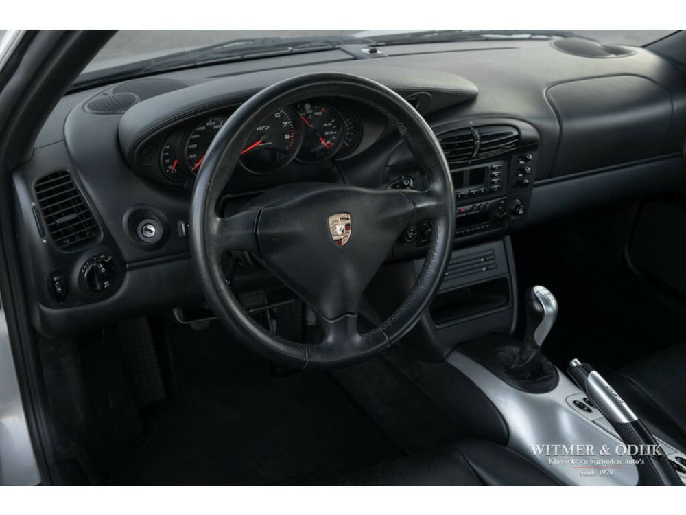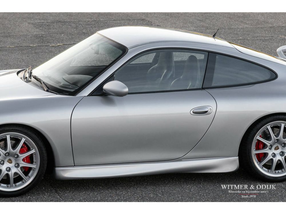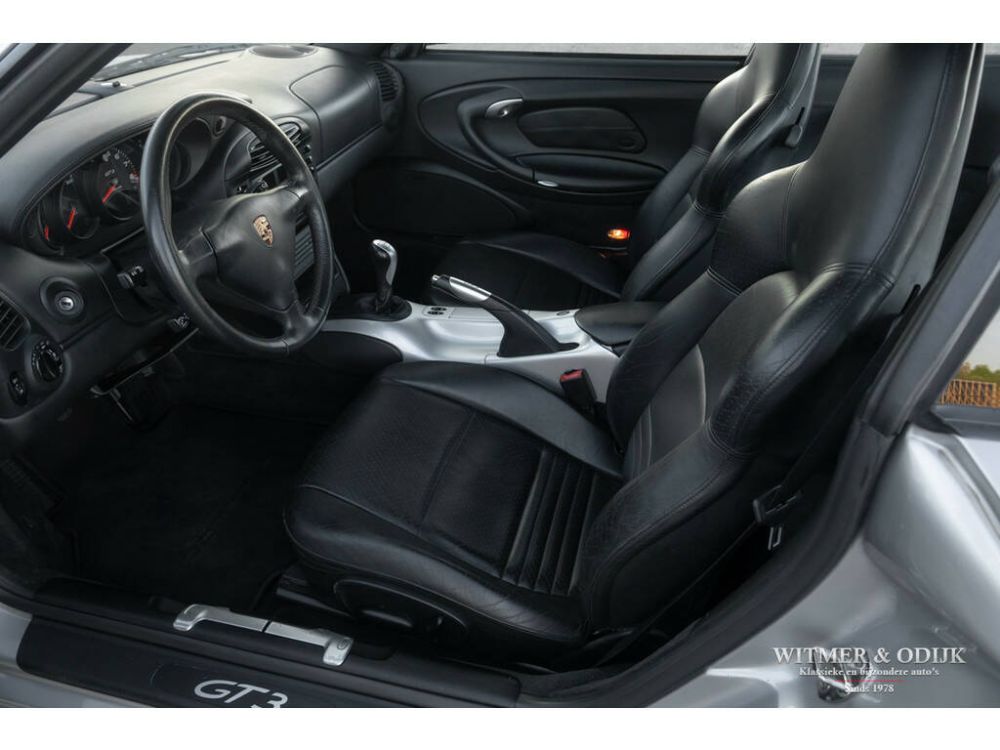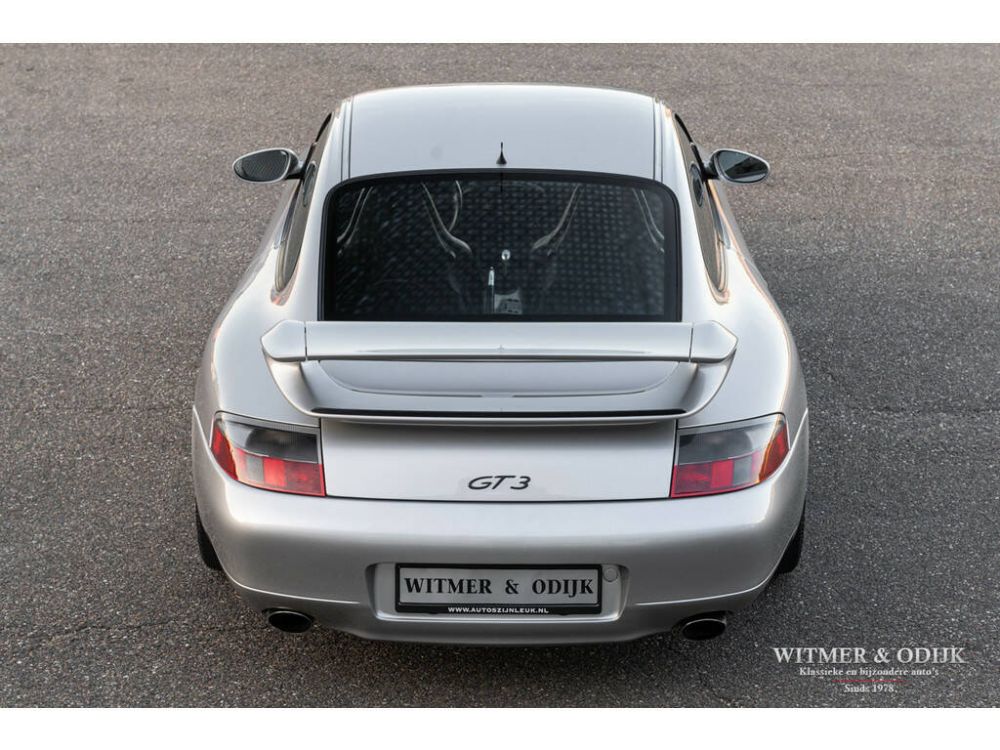 Naast de voor de openbare weg bedoelde 911's bouwde Porsche vanaf de zeventiger jaren altijd gelimiteerde series die feitelijk bedoeld waren voor het circuit. Zo zijn er bijvoorbeeld de legendarische 2.7 Carrera RS, 911 3.2 Clubsport, 964 RS en 993 RS. Door het zoveel mogelijk 'uitkleden' van de auto's en het toepassen van verlaagde onderstellen werden de rondetijden ten opzichte van standaard auto's sterk verbeterd. Bij het verschijnen van de watergekoelde 911 waren de algemeen gestelde veiligheidseisen aan moderne auto's zo sterk toegenomen dat men niet alleen meer middels gewichtsbesparing hogere prestaties kon verwachten. Zaken als airbags, ABS en verstevigingsbalken in de deuren voegen nu eenmaal kilo's toe. Reden voor Porsche om, terwijl de auto uiteraard zo licht mogelijk bleef, het motorvermogen flink op te krikken. De 996 GT3 MkI bracht 360pk op de achterwielen, dat is ruim 60pk meer dan een standaard 996. Zonder zaken als Traction Control of PSM zijn de 996 GT3's auto's die je niet even aan je neefje uit moet lenen tenzij die toevallig een racelicentie heeft. Gevallen van serieus Auw! zijn legio en daarom is bij het kopen van deze 'droomauto' enige waakzaamheid geboden. Tegelijkertijd is het volgens insiders daarom wel de allerleukste GT3 serie en zijn de prijzen de laatste jaren fors stijgende. Het hier aangeboden exemplaar is een originele, zuivere en schadevrije auto die mede gezien de beperkte productie een verantwoorde investering genoemd mag worden. De 996 GT3 MK1 is de originele en meest pure GT3. Opties betekenen gewicht dus daar wil je er niet teveel van aan boord hebben. Deze 996 GT3 houdt het beperkt tot automatische climat control, elektrische ramen, centrale deurvergrendeling met afstandsbediening, soundpakket in de deuren, boordcomputer en een originele Becker radio/cd speler met navigatie. De carrosserie in het bekende Arktissilber Metallic is volledig origineel en schadevrij. Om cosmetische redenen werd het linkerscherm net achter de deur een keer gespoten. De auto heeft geen noemenswaardige gebruikssporen of steenslag. Als gevolg van garagestalling was de lak niet onderhevig aan weersinvloeden en heeft ze een mooi diepe glans. Alle carrosseriedelen zijn origineel en rondom zijn de van fabriekswege aangebrachte beschermstickers keurig aanwezig. Ook de in de wagenkleur uitgevoerde bumpers zijn vrij van steenslag of parkeervegen. Rondom origineel glas zonder steenslag. De 996 GT3 was de laatste door Porsche Motorsport met de hand gebouwde auto en dat is in kleine details fraai terug te zien. Ook in de waardeontwikkeling van deze serie. Deze GT3 is voorzien van zgn. comfortstoelen met harde schalen als leuning. Bekleed met zwart leer, geen zichtbare gebruikssporen hierop en nog in de originele vorm. Het dashboard en deurpanelen zijn bekleed met zwart, dubbel doorgestikt, leer. Alles in het interieur is onbeschadigd en ademt de sfeer van originaliteit. Op de vloer originele Porsche matten. Alle schakelaars, hendels en klokken mooi schoon, onbeschadigd en goed afleesbaar. De 996 GT3's kregen als laatste watergekoelde Porsche's het als zeer betrouwbaar bekend staande 'Mezger' onderblok mee. Een motorontwerp van de hand van de bekende ingenieur Mezger wat bijvoorbeeld ook in de 700pk sterke GT1 Le Mans auto werd gebruikt. Een 'bulletproof' motor dus. In de GT3 brengt de motor 360pk op de achterwielen via het limited-slip-differentieel. De motorruimte van deze GT3 ademt absolute nieuwstaat uit. Ook de kofferruimte lijkt nieuw en is geheel onbeschadigd. Hier de CD wisselaar, onder de laadvloer het boordgereedschap en onder de klep de originele optiesticker. De originele tweedelige 18 inch GT3 velgen zijn in nieuwstaat. De Pirelli P-zero banden hebben de juiste N-codering en zijn in uitstekende conditie. In 2000 werd deze GT3 nieuw verkocht door een Duitse Porsche dealer. Al in 2006 werd ze door een collega Porsche specialist naar Nederland gehaald. Uit het originele serviceboekje blijkt dat de auto altijd zorgvuldig werd onderhouden door een Porsche dealer of specialist. Bij de auto zijn alle originele bescheiden, servicehistorie en reservesleutels. Wordt rijklaar afgeleverd inclusief nieuwe APK, garantie en onderhoudsbeurt. Zie onze website voor meer dan 100 foto's www.witmerodijk.nl of gebruik de volgende link, https://www.witmerodijk.nl/te-koop/porsche-996-gt3-mk1-'00-88.000km/2481