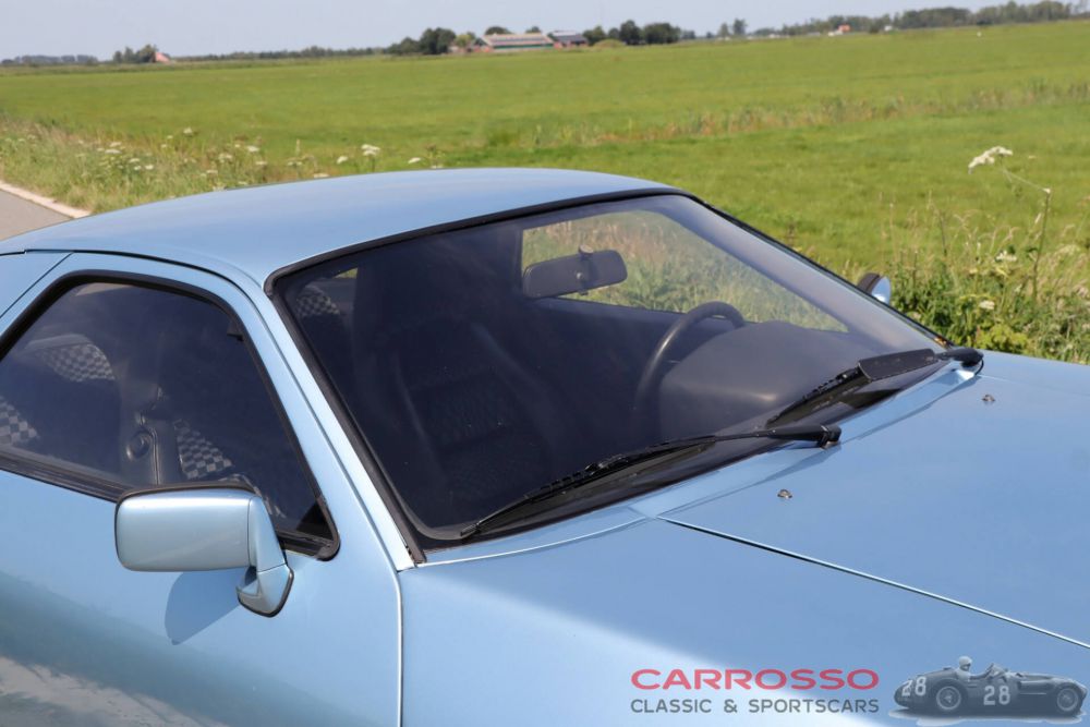 All body parts fit well together, the car is rust free and the composition is superb: a light blue colour ‘Hellblau Metallic’, original alloy wheels and a Pasha interior. This distinctive checkered interior is done with a hint of blue and is quite unique. The dash is free of cracks in the dashboard. The engine compartment is dry and the car drives, shifts and brakes very well. Recent upgrades include the clutch, pressure plate, thrust bearing and battery. Most 928s are fitted with an automatic transmission but this example is equipped with the coveted and faster manual ‘’Dogleg‘’ transmission. At the time, Porsche advertised the phrase ‘from 0 to 100 km/h and back to 0 in just 10 sec’ to indicate that both acceleration and braking power were above average. Porsche also described the 928 as three cars in one: a sports car with good performance, a comfortable, luxurious coupé and a purposeful, practical vehicle suitable for long distances and almost no maintenance. These words are nothing too much to say: in addition to excellent handling, the car is richly equipped with four seats, air conditioning, cruise control and electric windows and mirrors, among others. Included with the car are a 1979 manual, maintenance bills and a Car-Pass validating its low mileage of 105,589 km. This example in the beautiful blue metallic colour with beautiful interior is well maintained and an increasingly sought-after youngtimer and thus an addition to any collection.