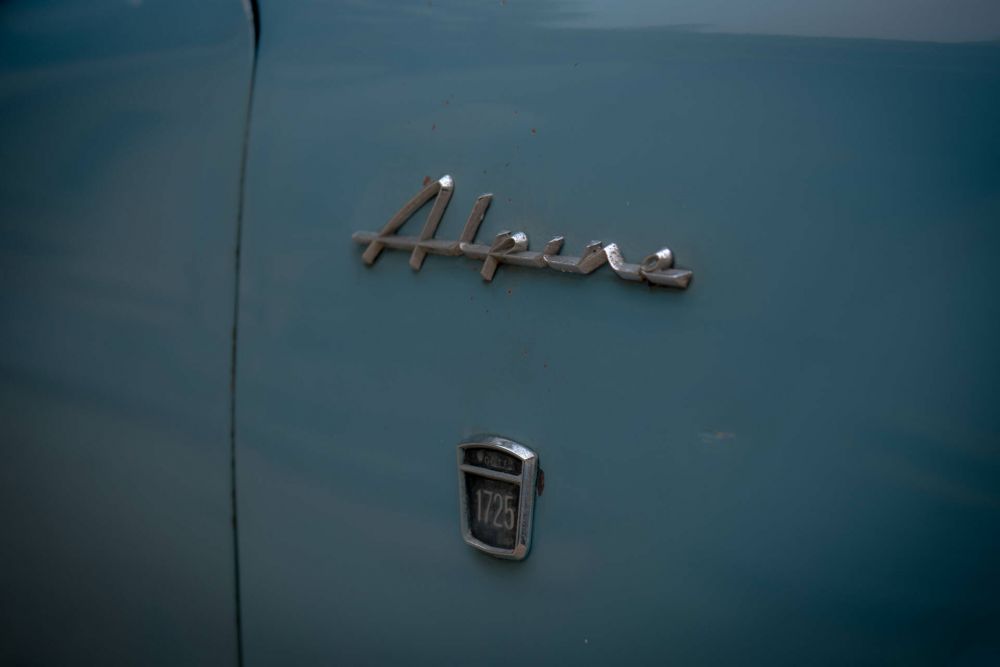 Sunbeam Alpine in light blue with black interior. Comes with a 4-speed manual transmission.