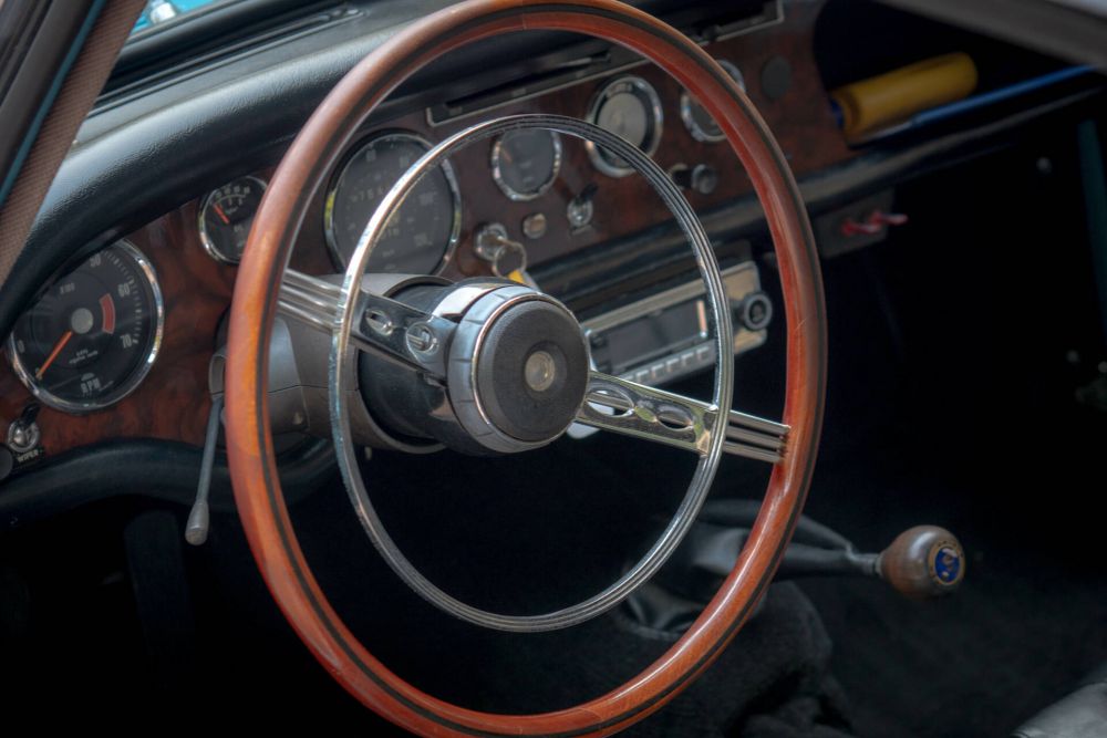 Wooden steering wheel and retro radio