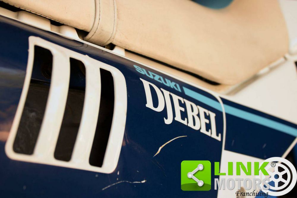 Questa DJEBEL (parola araba che significa montagna), sugli altri mercati chiamata Dakar, e per veri amatori ed appassionati dell'enduro! Sicuramente piu adatta all'uso fuoristrada che sull'asfalto, anche dato il suo nome, presenta una bellissima colorazione bianca, blu e azzurra, protezioni in plastica per i foderi della forcella, parafango anteriore di maggiori dimensioni, piccolo plexiglass fissato alla mascherina porta faro e colorazione diversa per sella e carrozzeria rispetto alla versione S. Originale, conservata e funzionante... motore infaticabile, brillante e affidabile... aspetta solo di vedere nuovi paesaggi!