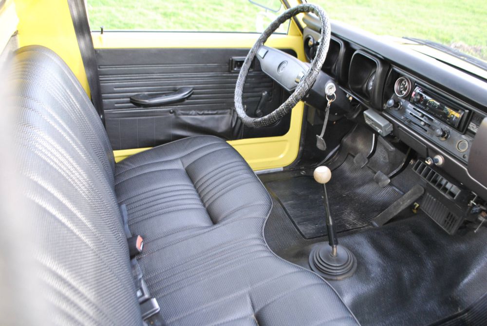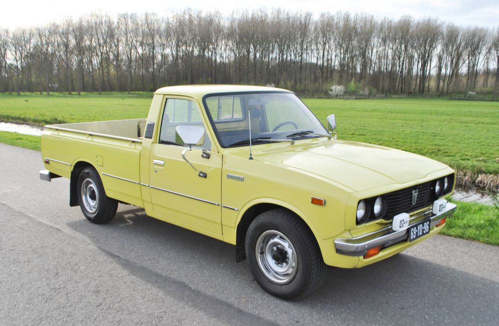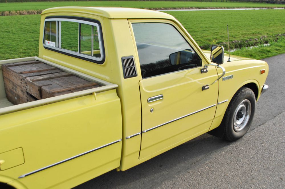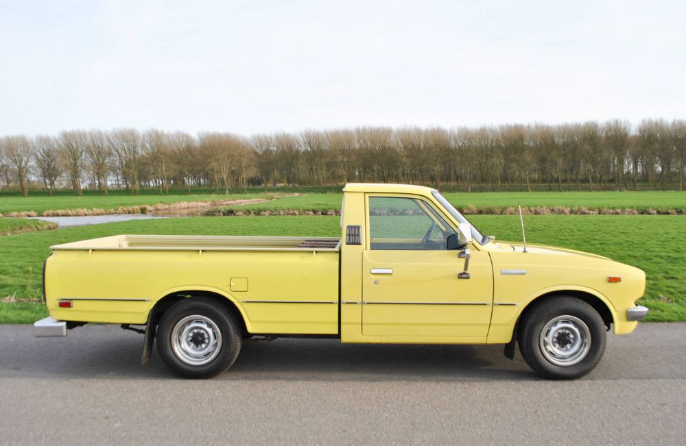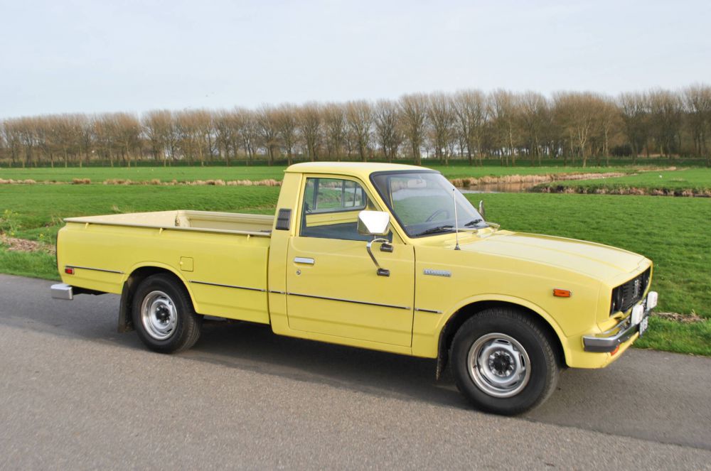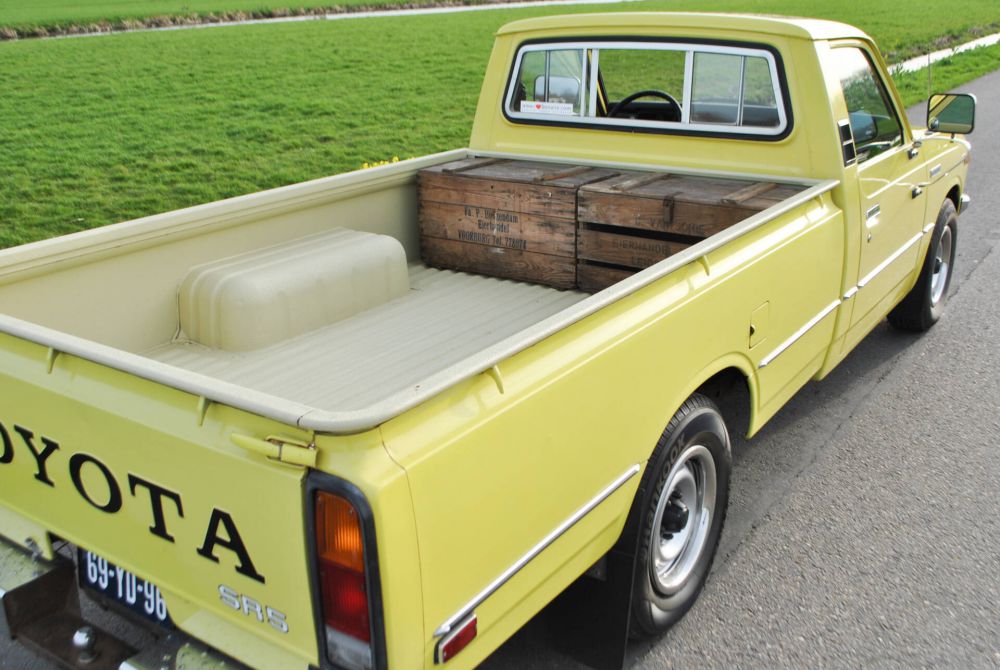 Toyota Hilux Pickup RN28L SR5, February 28, 1977, 80,442 miles (read), yellow with black leatherette. From the 4th owner (2 owners in America and 2 owners in the Netherlands). Very rare in the Netherlands! Import into the Netherlands in 2020. Radio, skai leather, 3 seats, chrome mirrors, rear sliding windows, hood and tow bar. Complete history, all booklets and folder with invoices included. Mostly the first paint, only the roof and hood have been repainted. MOT valid until June 16, 2026. It is a 20R engine (2,189 cc) 2.2 liter 4-cylinder petrol engine with 98 HP (72 KW). Weight: 1,180 kg. Road tax free.