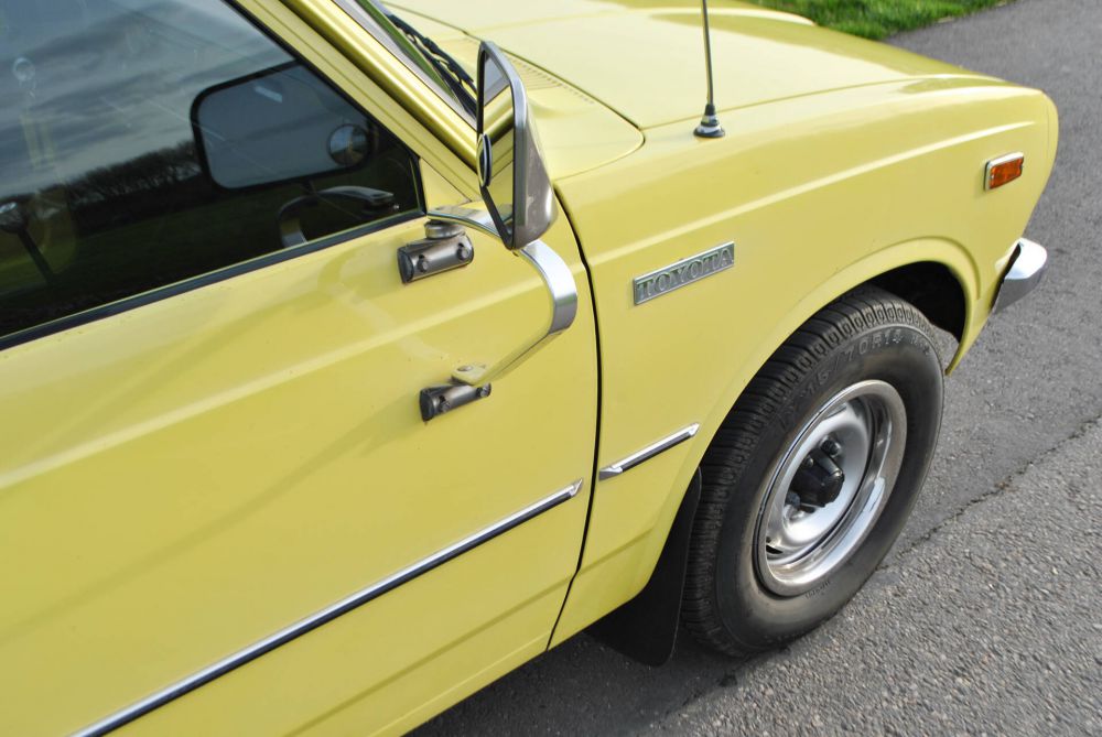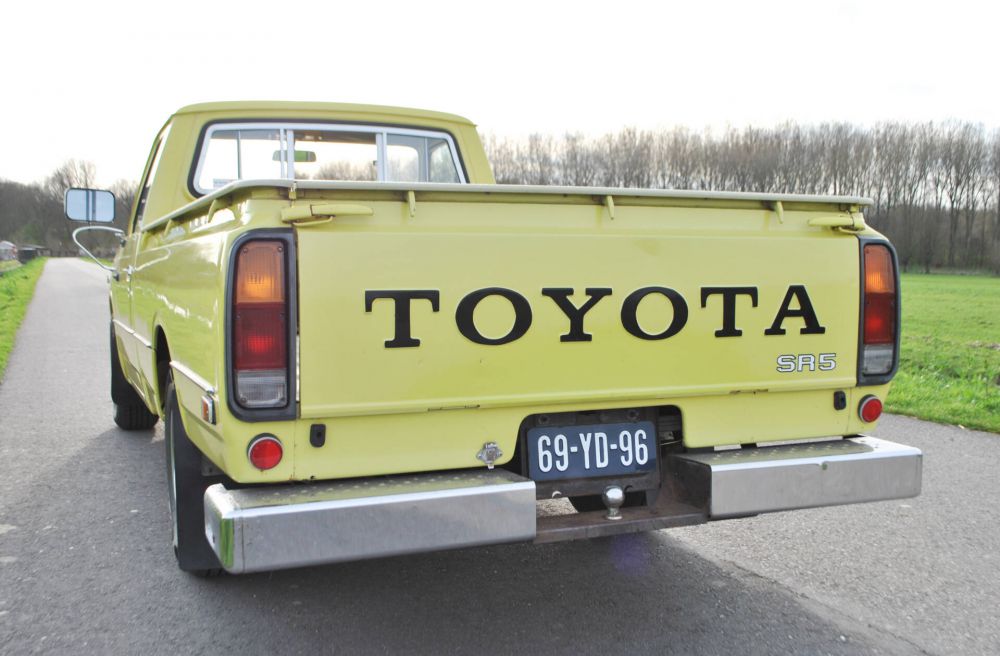 Dutch: Toyota Hilux Pickup RN28L SR5, 28 februari 1977, 80.442 miles (afgelezen), geel met zwart skai-leer. Van de 4de eigenaar (2 eigenaren in Amerika en 2 eigenaren in Nederland). Zeer zeldzaam in Nederland! Import in NL in 2020.