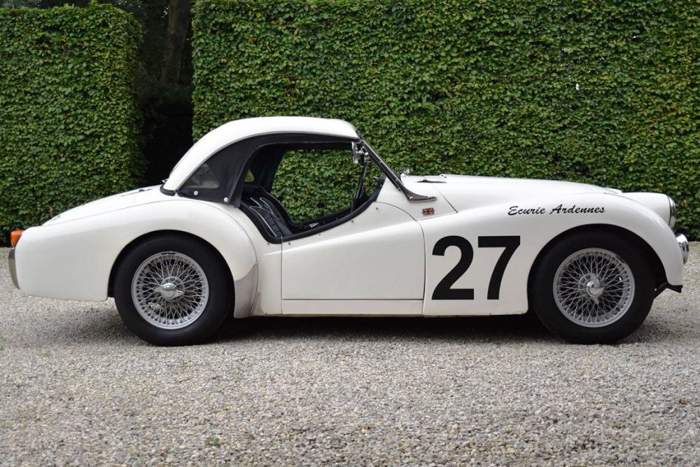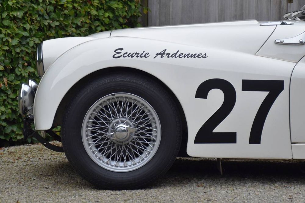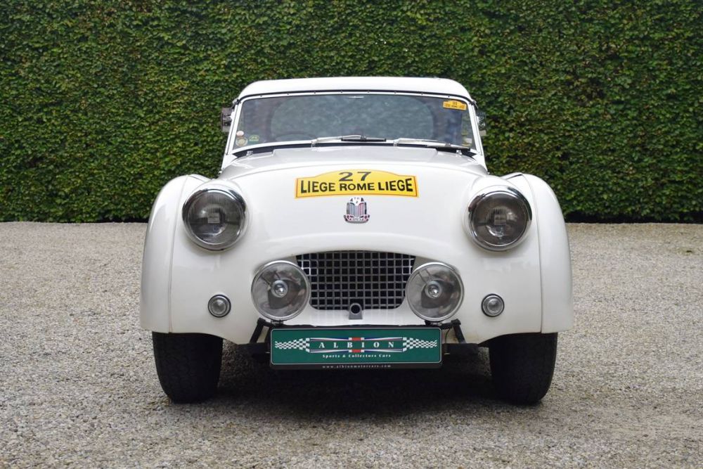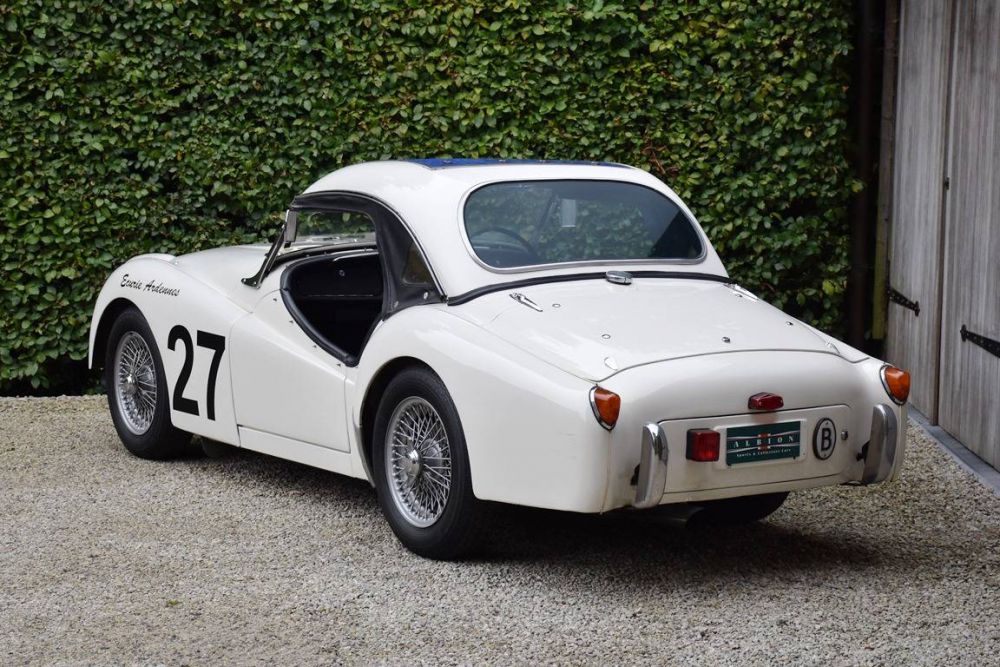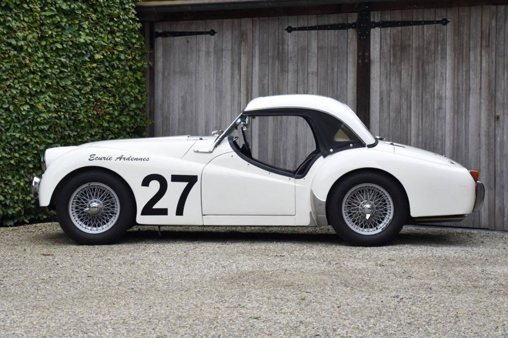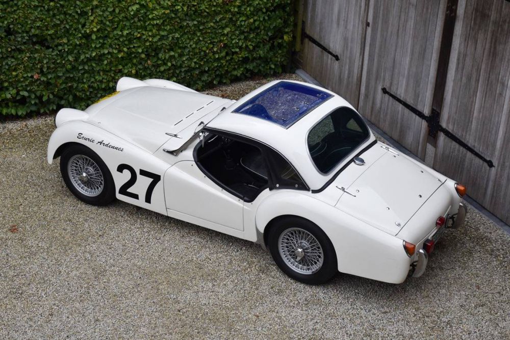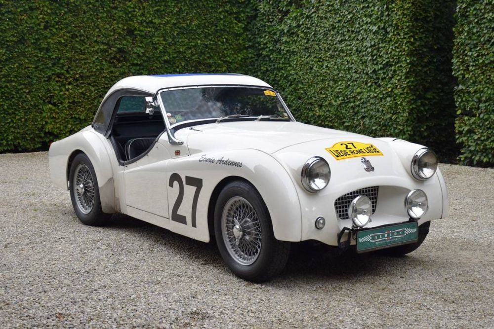 We are proud to offer this very special Triumph on the market. It is a unique vehicle with lots of competition history and creditable placings in the gruelling 1954 and 1955 Liège-Rome-Liège marathon rally. The car could be best described as a TR2 'Semi-Francorchamps'. It was a former TR2 rally car, fitted almost from new with a unique removable hard-top having the same lines as the true coachbuilt Francorchamps Coupé but without the latter's side glass windows and built-up doors. This Francorchamps model was built by Belgian car manufacturing company Imperia based in the town of Nessonveaux (near Spa Francorchamps racing circuit). They assembled CKD kits for Standard-Triumph destinated for the Belgian and Dutch market, and created their own luxurious TR2 Coupé version named the Francorchamps, with a panoramic rear window and clear sun-panel in the top. It was a very costly build process, and due to the high selling price only 22 examples were sold. For that reason, these Francorchamps versions are now very sought after by classic car collectors.