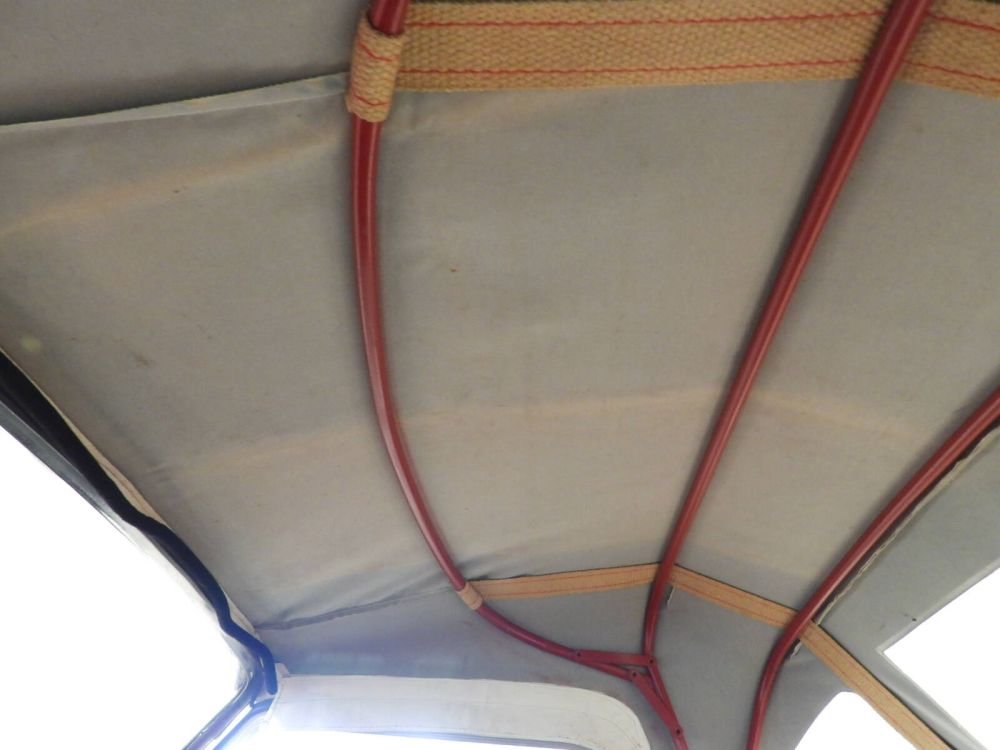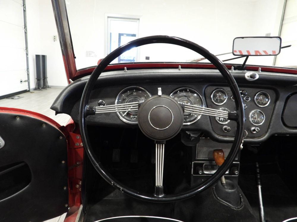 Sedili e pannelli in sky nero con pipeline avorio, Volante a tre razze originale, Pomello del cambio in legno, Autoradio AM originale dell’epoca, Doppio specchio esterno cromato ai parafanghi anteriori, Portapacchi posteriore cromato, Cerchi in ferro con calotta cromata Triumph, Capotte in Pvc avorio, Copri capotte in pvc avorio, Voletti asportabili
