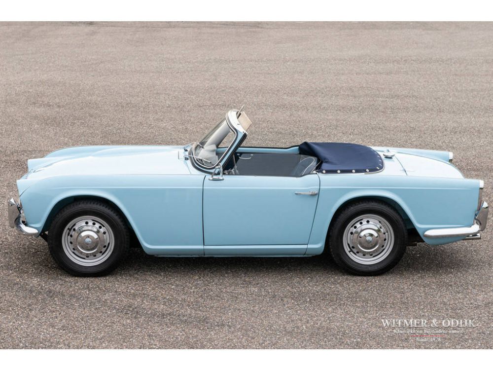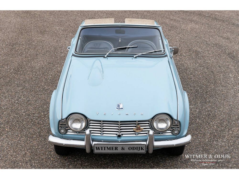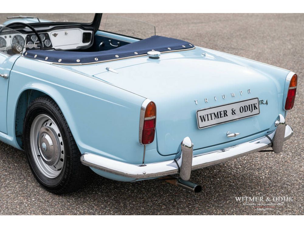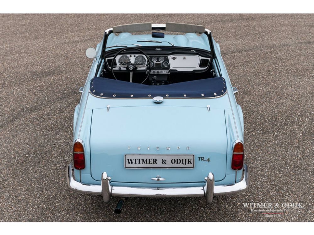 Na het succes van de TR3 was Triumph verplicht om met een vervanger te komen. Eleganter, beter en sneller, maar vooral bruikbaarder in dagelijks gebruik. De auto had nu echte ramen en een makkelijker dak, waarmee het een echte cabriolet werd. De TR4 kreeg ook twee carburateurs en een grotere boring. Rijden met deze TR4 is dan ook een feest. Dat de rijeigenschappen ook na zestig jaar nog zo verbluffend goed zijn is in hoge mate afhankelijk van de conditie van de auto. Als gevolg van een totaal-restauratie, uitgevoerd door specialisten over een meerjarige periode, is de auto min of meer in 'concoursconditie'. De bij de auto aanwezige fotoreportage toont aan dat de auto compleet nieuw opgebouwd werd, dit op basis van een harde, gave en roestvrije carrosserie. Techniek, bekleding, cabriokap, etc. alles ging door de handen van vakmensen en werd gereviseerd of vernieuwd. De restauratie werd in hoofdzaak uitgevoerd door Hans Kooij, een gerenommeerd TR specialist. In 2021 werd door Jasper Beukenkamp Classic Cars nog groot onderhoud uitgevoerd en de techniek tot in detail gecontroleerd, ook hiervan zijn facturen aanwezig. Voor wie zich een compromisloze TR4 wenst in een prachtige kleurstelling een uitgelezen gelegenheid. De aanschaf en restauratie van deze Triumph overstijgen de huidige koopprijs ruim, altijd (meestal) fijn als iemand u voorging. Rijklaar in onze showroom te bewonderen. Zie onze website voor meer dan 100 foto's www.witmerodijk.nl of u gebruikt de volgende link, https://witmerodijk.nl/te-koop/triumph-tr4-'62-aaa-conditie-13.500-km/2352