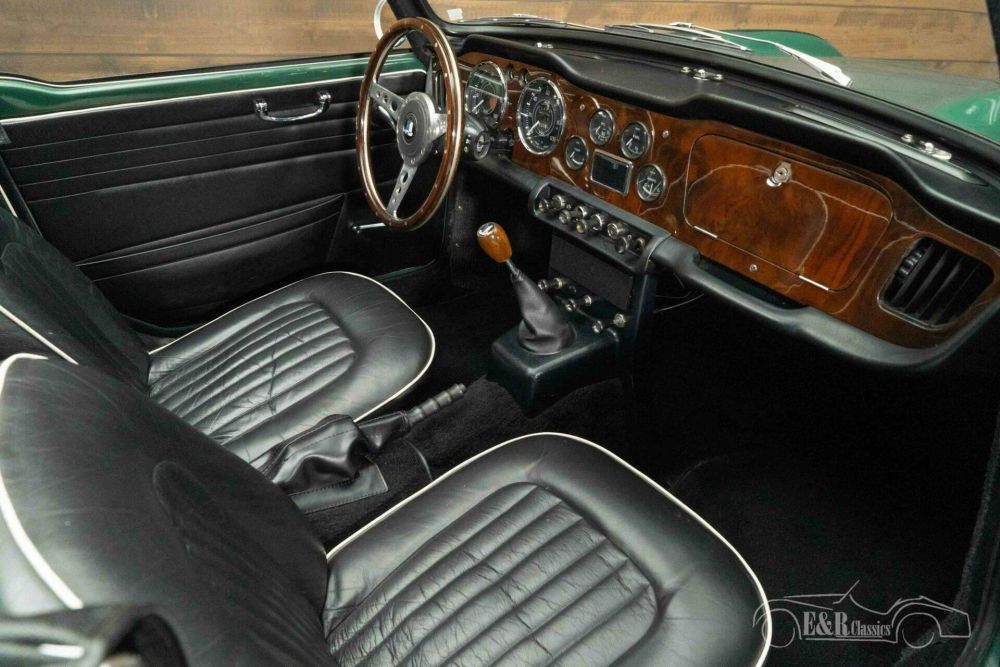 The exterior of this TR4 is painted in the iconic British Racing Green, a colour that perfectly matches the sporty and timeless appearance of the car. The black soft top adds a stylish contrast and ensures that you can enjoy this cabriolet in all weather conditions. The chrome luggage rack and the steel rims with chrome lids enhance the classic look. The interior is equally impressive, with a combination of black upholstery with white piping and a beautiful wooden dashboard. The sports steering wheel adds an extra touch of elegance and authenticity, which further increases the driving pleasure.