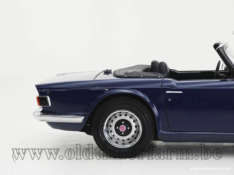 Under the hood, you will find the renowned 2.5-liter inline 6-cylinder engine, equipped here with a polished valve cover and fed by two dual sports carburetors that replace the original Strombergs, adding about 15-20 horsepower. The last technical inspection in 2024 was positive, indicating the car's excellent condition. According to the Car-Pass mileage history, the TR6 has only driven 12,000 miles since 2000. This mileage is supported by a comprehensive maintenance history documented with invoices detailing every aspect of the car's maintenance and care. The vehicle comes with Belgian papers.