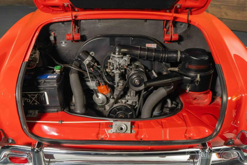 The Karmann Ghia Coupe that we offer for sale here is truly a picture to behold. It is finished in a beautiful red paintwork that looks great on the classic and combines nicely with the chrome. The interior is in a neat, original condition and is equipped with black leatherette upholstery.