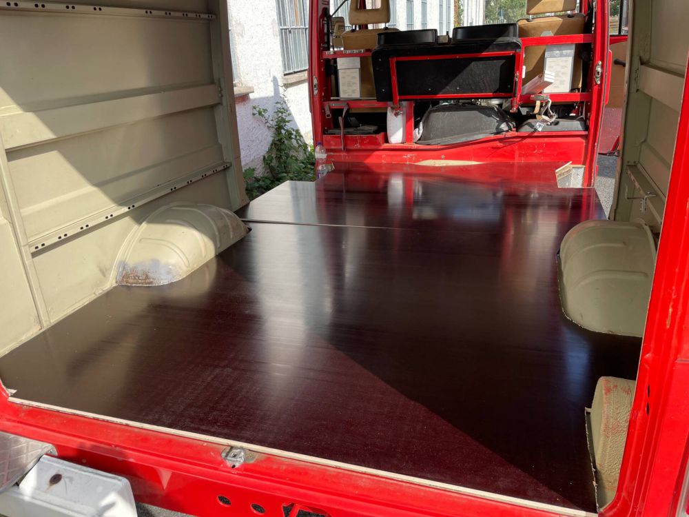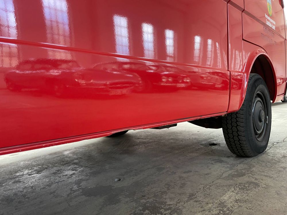 Durch und durch solider VW LT31 2.4 Liter 6-Zylinder-Benziner-Feuerwehr mit nur 36.120 km. Günstige Steuer und Versicherung durch Veteranenstatus! Ideal als kräftiges Wohnmobil ohne Schwäche am Berg mit H-Kennzeichen. Daher befreit in die deutschen Umweltzonen einfahren und im Ausland die Dieseleinfahrverbote entspannt belächeln. Mehr noch hat dieses unverwüstliche LT-Exemplar einen stabilen, nicht verrotteten Unterboden. Der ursprünglich am Radlauf und den Endspitzen vorhandene leichte Rost wurde kürzlich gründlich und professionell (Raustrennen, Einsetzen, Lackieren) beseitigt. Diese Arbeiten wurden fotografisch vom Karosseriebauer unseres Vertrauens dokumentiert. Die Feuerwehr-Gerätehalter wurden entfernt und der Boden mit einer durchgängigen Siebdruckplatte optisch und technisch upgedatet. So ist das wunderbare „feuerrote Spielmobil“ gebrauchsfähig und für vielfältige Nutzungen offen. Einfach eine Matratze reinschieben und ab nach Wacken oder nach einem veritablen Wohnmobilausbau auf Entdeckungstour zum Nordcap. Nicht zu vergessen für das erste lange Abenteuer: Der Wagen hat einen neuen Zahnriemen samt Inspektion erhalten.