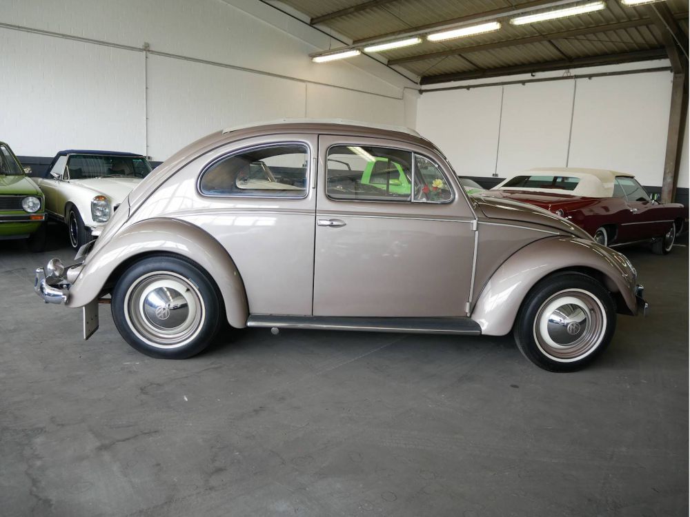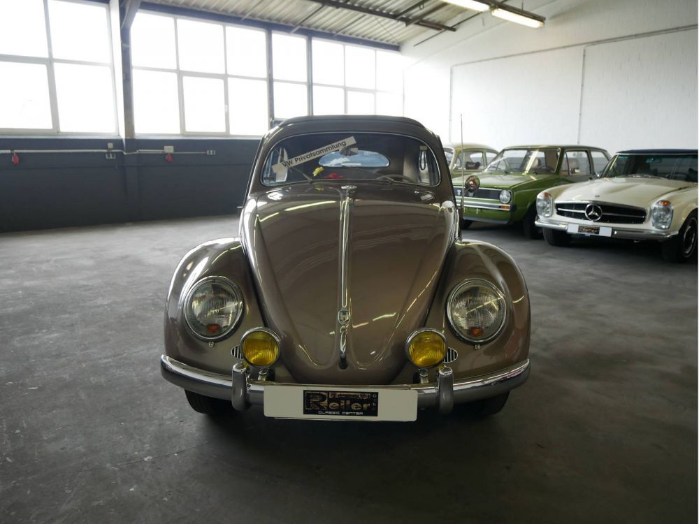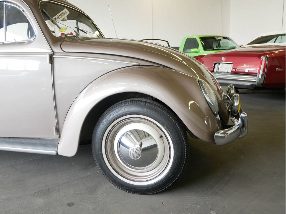 Der Käfer Ovali hat seinen Namen durch den Brezelkäfer, welcher keinen Mittelsteg am Heckfenster mehr hat. Hierdurch ergibt sich die durchgehende Heckscheibe in ovaler Form, welche diesem Modell seinen Spitznamen verleiht. Dieser Käfer befindet sich nachweislich in 2.Hand und ist in einem absoluten Originalzustand. Der Wagen befindet sich seit 1978 in der Hermann-Walter Sammlung in Kaunitz. Wir übergeben das Fahrzeug mit einem Jahr Garantie und neuer Hauptuntersuchung.
