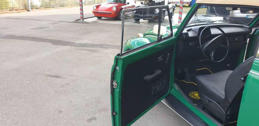 DESCRIZIONE RESTAURO COMPLETO AUTO GIA’ IN OTTIME CONDIZIONI DI CARROZZERIA  ALL’ ACQUISTO.E STATA ESEGUITA LA VERNICIATURA COMPLETA INTERNA ED ESTERNA PERCHE ERA DI COLORE ROSSO E LA VERNICE SALTAVA VIA ,SONO STATE SOSTITUITI QUASI TUTTI GLI  ACCESSORI INTERNI ED ESTERNI,TAPPEZZERIA INTERNA COMPLETA GUARNIZIONI ,PEDANE ,PARAURTI, MODANATURE CROMATE I FRENI FRIZIONE NUOVI ,MOTORE NUOVO DIMOSTRABILE CON FATTURA.
