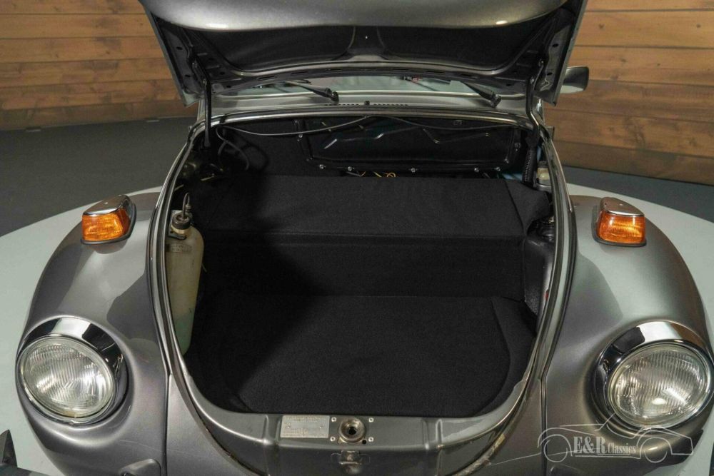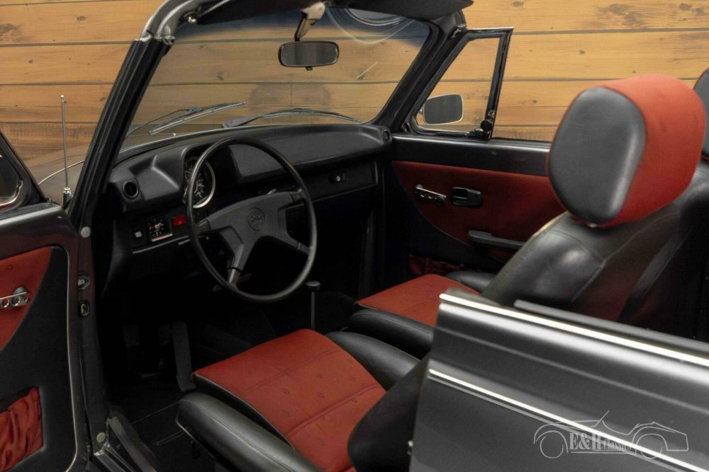 The Volkswagen Beetle Cabriolet that we offer for sale here is truly a sight to behold. It has a beautiful anthracite-coloured metallic paint that looks great on the car and combines very nicely with the chrome and alloy rims. The interior of the Beetle is two-tone and is in very good condition. It is also equipped with a burgundy red fabric soft top and cover. In short, a beautiful Volkswagen Beetle in a very tasteful colour scheme that is completely ready for its new owner.