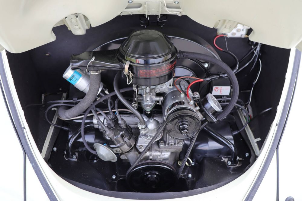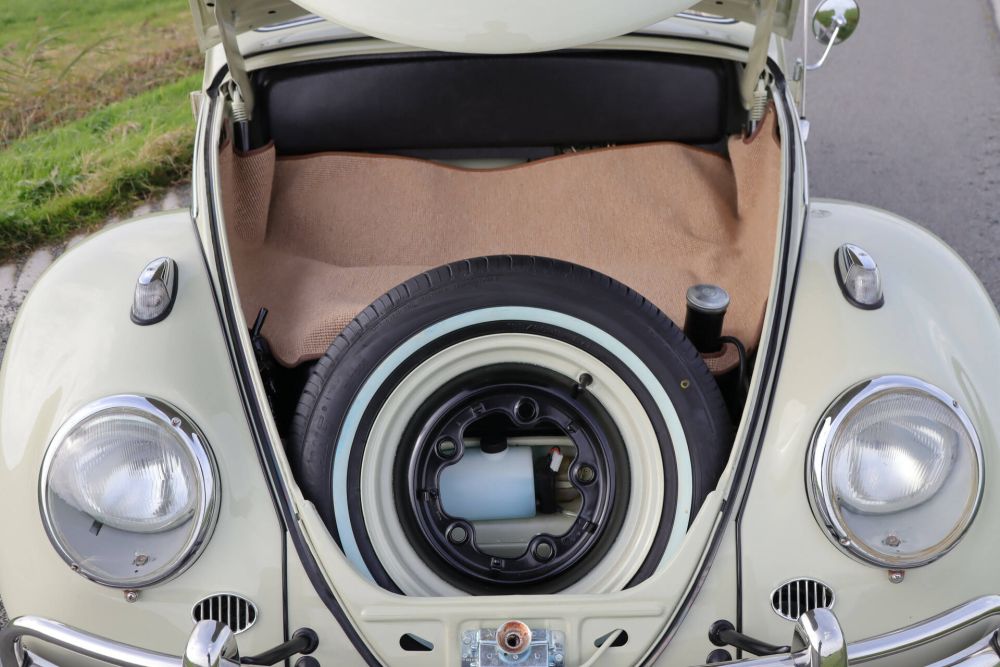 Sometimes you instantly fall in love with a car: this is certainly the case with this beautifully restored ‘Beetle’. It was built in 1963 by coachbuilder Karmann and delivered new in the United States. In 2020, the restoration was completed and the car was registered on Dutch registration plates. The restoration was carried out professionally and it shows: neither cost nor effort were spared and high-quality products and materials were used, leaving the car in excellent condition. The car has therefore been appraised at state 1, the best possible class (with an appraisal value of €75,000). The car cannot be checked for matching numbers but has been checked for originality. For example, the car originally has the swing-down rear windows (unlike many replicas). The brown convertible top has been luxuriously and exclusively manufactured by a renowned German company (KHM Cabrioverdecke). This includes a tonneau cover and cover. The colour combination of the car is stunning: pearl-white paintwork with a brown hood and beige interior. This interior has high-quality floor mats and the original, working radio. Even when driving the car, you can feel that love has been put into it: it drives and shifts superbly. A uniquely beautiful car in concours condition!