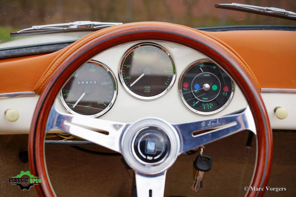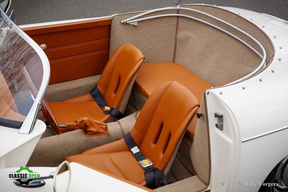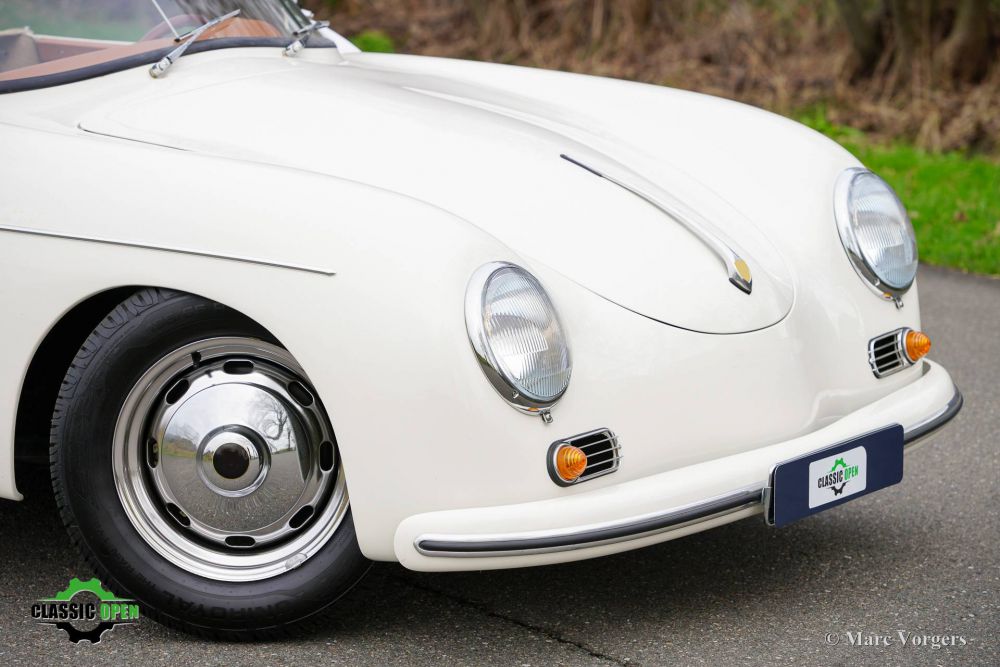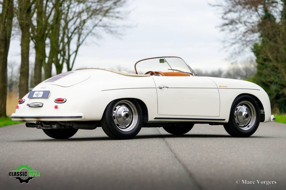 Volkswagen 356 Speedster Replica, 1972 356 Speedster Replica, year 1972. Colour crème white (Elfenbein Weiss) combined with a cognac brown leather interior and trimmed with beige carpet. Beige soft-top and ½ tonneau cover. This gorgeous 356 Speedster replica was built on a shortened 1972 VW Beetle chassis. During the built an overhauled 1641 cc air-cooled engine was installed and fitted with two twin choke Weber carburettors and electronic ignition. With a completely new front axle (EZ Rider Twin Wishbone front suspension) for improved road holding and with disc brakes. The engine exhales through a special twin-pipe sports exhaust which produces an impressive soundtrack. This 356 Speedster replica is in a superb condition, only the floor mats show the slightest traces of previous use. This car comes from a caring classic car enthusiast who drove the car occasionally, and who had the car garaged and serviced perfectly. Original Porsche 356 Speedster cars are rare, sought after, and therefore very expensive. A good replica is quite affordable and can be the ideal substitute for many to enjoy the beauty and style of a 356 Speedster. This is a beautiful example, and the wonderful Nardi steering wheel with wood rim is waiting to introduce a new owner to a wonderful driving experience! We speak Dutch, English , German and French. Transport to your door is possible. We have our own workshop facility with 30 years experience with classic cars.