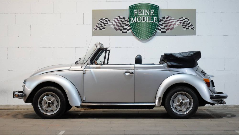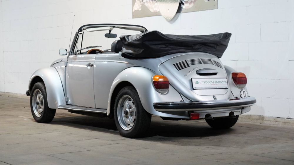 We offer you a beautiful VW Beetle convertible in silver metallic. This open Evergreen was at home with the last owner for a long time and was only rarely moved when the weather was nice. This VW Beetle convertible is delivered ready for registration and with a two-year TÜV inspection.