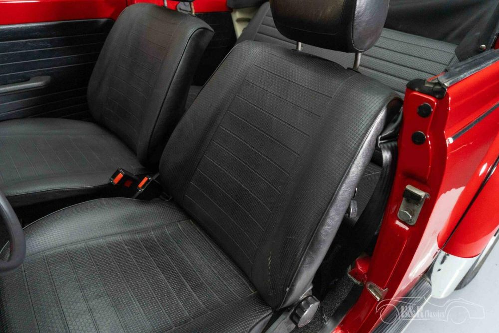 The overall picture of the Beetle Cabriolet that we offer for sale here is completely correct. It has a beautiful red paint that combines very nicely with the chrome and fits perfectly with a classic car from the 1970s. The interior is in a very neat condition and is equipped with black artificial leather upholstery. The Beetle is also equipped with a very nice fabric soft top including cover. The ATS wheels give the classic car a distinctive character.