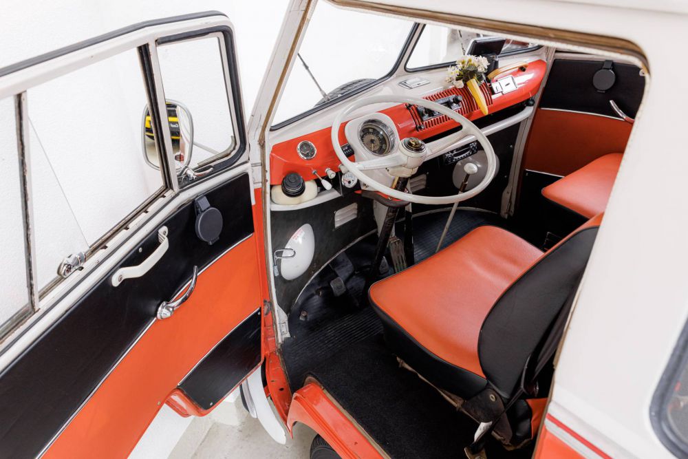 Unser Exemplar hat eine schöne Vergangenheit. Geboren in Deutschland und dort als Taxi mit einem Lächeln um viele Mitreisende gebracht. Mit seinen durchgehenden Sitzbänken als Alleinstellungsmerkmal sehr geeignet. Ein Tipp an alle schäbigen Taxis, die auf Extrakilometer aus sind: Steigen Sie in einen T1 ein und die Kunden werden selbst nach einer Extrarunde fragen! Der Volkswagen T1 Samba ist ein Fahrzeug, das Ihre Phantasie anregen wird.