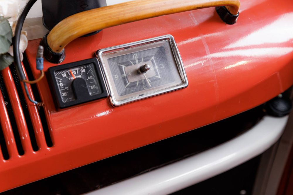 Der T1 Samba ist für sein einzigartiges Design bekannt. Eine geteilte Windschutzscheibe, eine V-förmige Front und eine auffällige zweifarbige Lackierung mit einem kräftigen, kontrastierenden Streifen. Der Innenraum dieses wunderbaren Exemplars ist geräumig und einzigartig in seiner Ausführung. Damals war er eine beliebte Wahl für Familien, Surfer und ja, auch für Hippies. Zum Glück bietet er mit seinen 21 Scheiben viel Kopffreiheit für dampfende Vor-Zigaretten. Heute ist er ein schönes Exemplar für jeden Abenteurer und Enthusiasten.