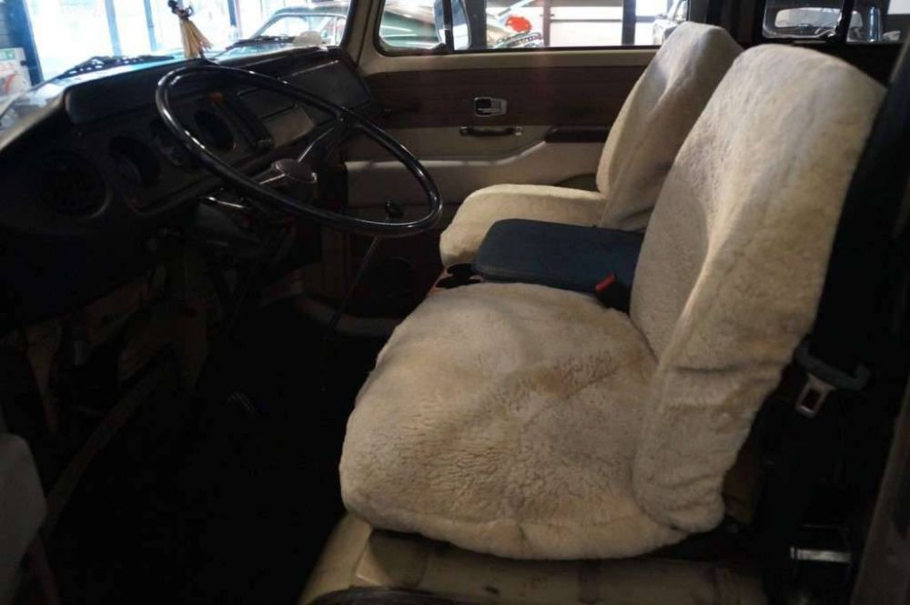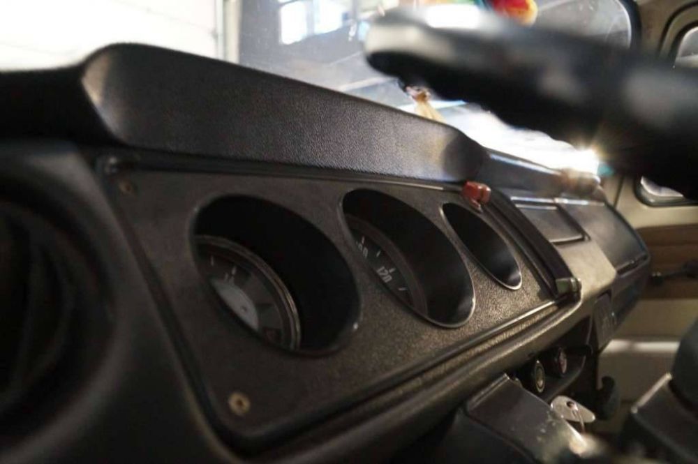 Het interieur behoudt nog steeds de vintage charme van het originele voertuig.