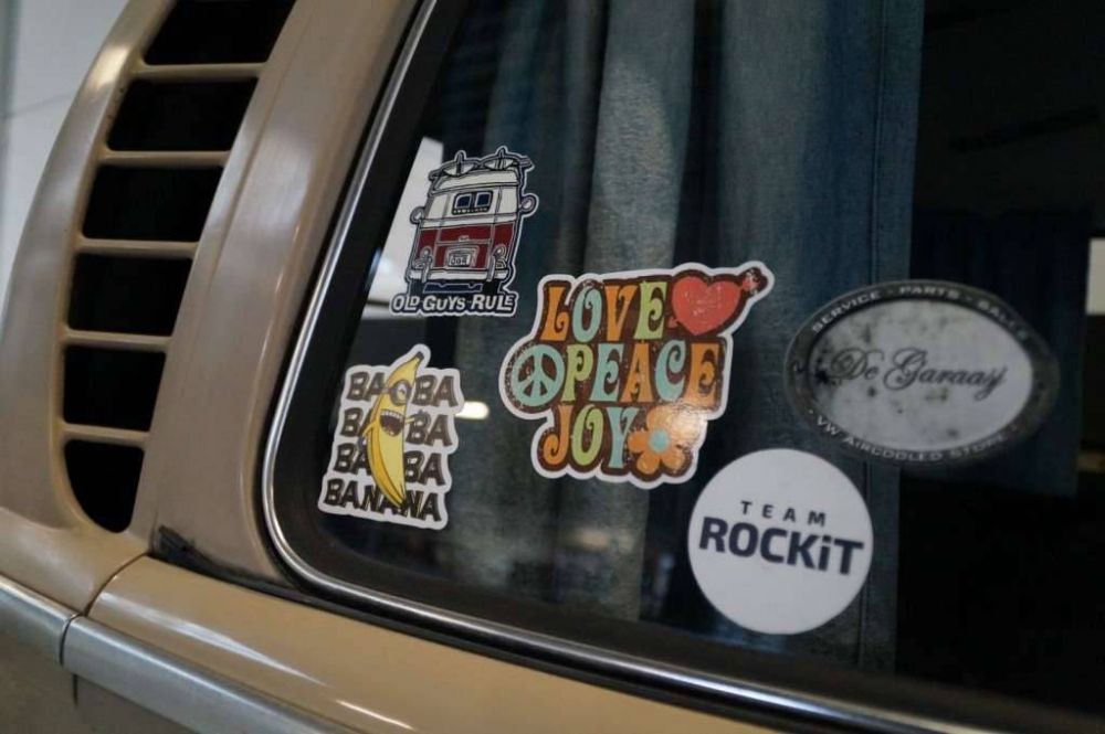 In het geval van deze VW T2 Deluxe Bus heeft de buitenkant opzettelijk een versleten, verweerde uitstraling te gekregen.