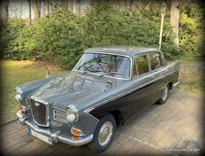 Wolseley 15/60, Ertzulassung am 17.07.1959 als originaler Linkslenker in Belgien, Yukon Grey /Black mit dunkelroter Lederinnenaustattung, phantastischer originaler Erhaltungszustand, eine kleine Luxuslimousine für die ganze Familie, das Fahrzeug verfügt über eine Deutsche historische Zulassung mit aktuellem TÜV. Der Wolseley 15/60 war der erste der von Pininfarina entworfenen Mittelklasse-PKW, den BMC herausbrachte. Er wurde im Dezember 1958 als Nachfolger des Wolseley 15/50 vorgestellt. Der 15/60 gehörte zur Modellfamilie BMC ADO9 und teilte seine Konstruktion mit den Modellen mehrerer anderer Marken. Nachdem BMC bereits 1958 mit dem Kleinwagen Austin A40 Farina ein von Pininfarina gestaltetes Modell vorgestellt hatte, ließ dieser britische Konzern auch die Karosserien der nächstgrößeren Modelle in Italien entwerfen. Diese Modellfamilie erhielt die Bezeichnung ADO9. Wie schon zuvor, wurde die Grundkonstruktion mit leichten äußerlichen Änderungen von diversen Konzernmarken angeboten. Den Anfang machte die Wolseley-Version, die die Bezeichnung 15/60 trug und den bisherigen 15/50 ablöste. Der Wolseley war mit seinen Ledersitzen und seinem polierten Holzarmaturenbrett im Bereich der oberen Mittelklasse positioniert, eine sportliche Note hatte der Wagen nicht. Innerhalb weniger Monate wurden die nahezu identischen Modelle Riley 4/68 (sportlich-luxuriös), Austin A55 Cambridge Mark II (Basis), MG Magnette Mark III (sportlich) und Morris Oxford V (Basis) nachgereicht. Alle fünf Autos besaßen einen BMC-B-Vierzylinder-Reihenmotor mit 1.489 cm³ Hubraum, der je nach Vergaserbestückung unterschiedliche Leistungen erreichte. Wolseley 15/60, Austin Cambridge und Morris Oxford standen mit ihrem einzelnen SU-Vergaser und 52 bhp (38 kW) am unteren Ende der Leistungsskala. Die Vorderräder waren einzeln an Schraubenfedern aufgehängt, die angetriebene hintere Starrachse hing an Blattfedern. Die hydraulischen Trommelbremsen von Girling hatten einen Trommeldurchmesser von 229 mm. Die Wagen verfügten über eine Rosslenkung. Die Polsterung war mit Leder bezogen, und die vorderen Einzelsitze lagen eng beieinander, damit in der Mitte ein Passagier mitgenommen werden konnte. So bot das Fahrzeug trotz des Mittelschalthebels Platz für sechs Personen. Darauf wurde in der Werbung ausdrücklich hingewiesen. Der Handbremshebel war zwischen Fahrersitz und Türrahmen angebracht. Der Rücksitz hatte eine ausklappbare Mittelarmlehne. Holzverblendungen wurden am Armaturenbrett und in den Türverkleidungen eingesetzt. Eine Heizung von Smiths war serienmäßig. Die Wagen waren einfarbig oder auf Wunsch auch zweifarbig lackiert, wobei die zweifarbige Lackierung amerikanische Vorbilder aufgriff und nach Ansicht von Beobachtern mit der Schlichtheit des italienischen Grundentwurfs  harmonierte.Die gemachten Angaben sind unverbindliche Beschreibungen.Sie stellen keine zugesicherten Eigenschaften dar.Der Verkauf erfolgt im Kundenauftrag. Der Verkäufer haftet nicht für Irrtümer, Eingabefehler und Datenübermittlungsfehler.Das Fahrzeug kann jederzeit nach vorheriger Terminabsprache in unserer Ausstellung besichtigt werden. Für weitere Fragen stehen wir jederzeit gerne zur Verfügung.Das Angebot versteht sich als freibleibend. Bei Leasing und Finanzierung sind wir erfahren und gerne behilflich. Das Fahrzeug steht in unserer Ausstellung in Hamburg. Probefahrten und Besichtigungen bitte nur nach vorheriger Terminvereinbarung. Telefonate werden sofort beantwortet, E-Mails dauern etwas länger. Weitere Bilder und Informationen finden Sie auch auf: www.vanbargen.de. We do speak english!