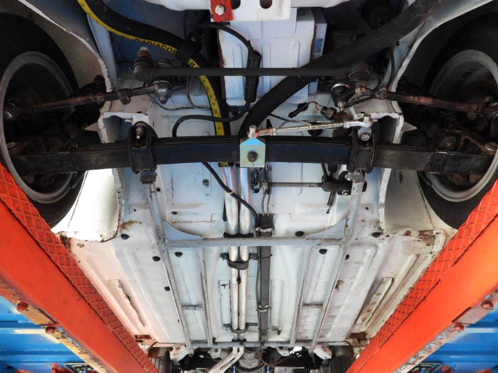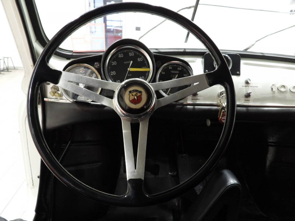 Sedile dell’epoca tipo corsa, cinture a 3 punti, Volante originale Abarth, Freni anteriori a disco originali Girling con ripartitore di frenata, Cambio Abarth 5 marce, Radiatore maggiorato e coppa dell’olio maggiorata tipo corsa