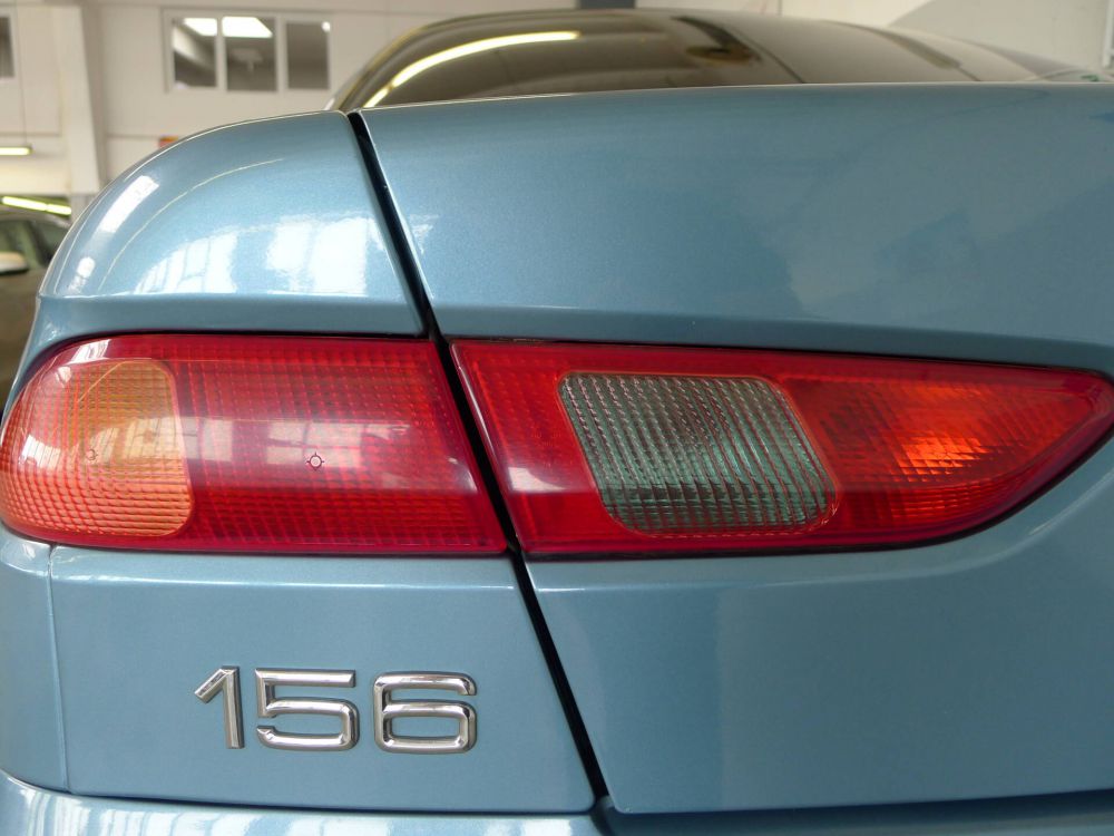 Neu im Angebot aus dem eigenen Bestand ist dieser lückenlos Scheckheft gepflegte und -vor allem- rostfreie Alfa Romeo 156 2 Liter Twin Spark in der sehr attraktiven Farbe azzurro fantasia mit blauem Velour aus dem Baujahr 1999 mit etwas über 1115.00 Kilometern und 4 Vorbesitzern, wobei 1. und 2.Halter Ehegatte – und -gattin waren.