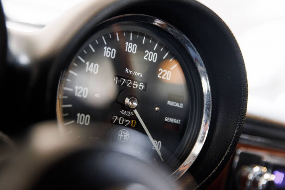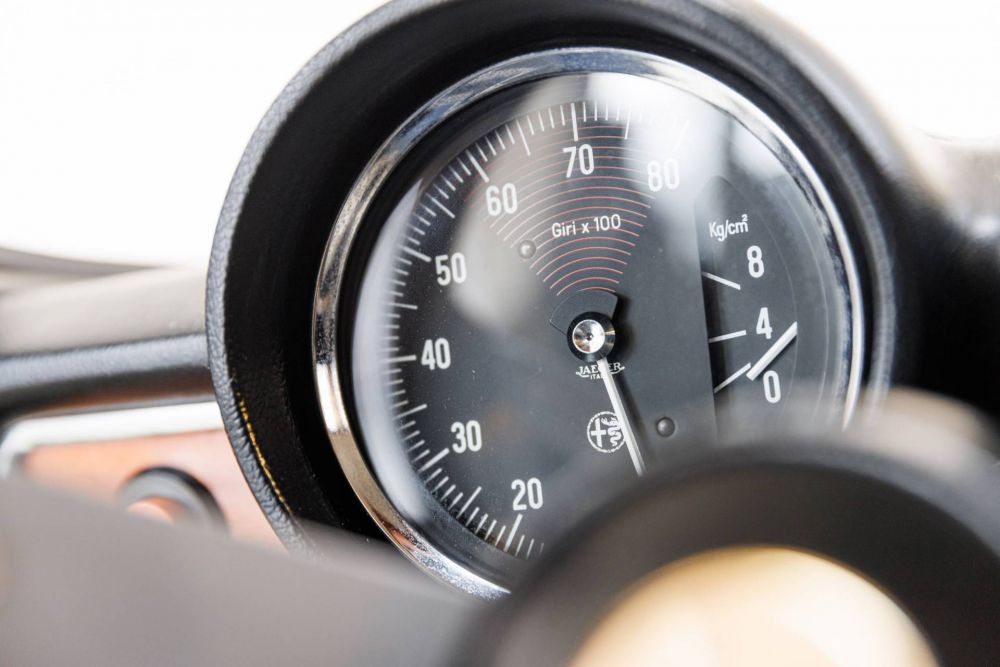 The handling of the 1750 GTV is also exactly what you expect from a legendary Romeo. Tight on the road, plenty of contact with the tarmac and pushing in the lower back due to the rear-wheel drive. When your ‘olio’ gauge is in the middle, that’s where the sound comes in. Because how good it is! Between 5- and 6 thousand revs, it drives most nicely, sounds healthiest and as soon as you release the throttle, just enough afterburner. No DSG crackling of the modern VW Golfs, but real afterburning. You can feel your chest hair growing every time you downshift!
