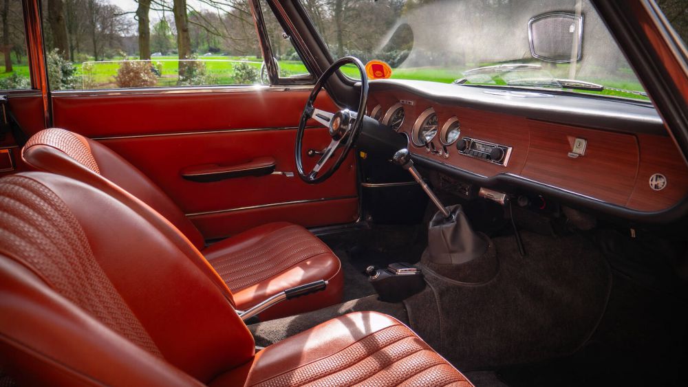 Under the hood is a Veloce engine. This 4-cylinder engine has a cylinder capacity of 1,570 cc. This engine has been improved compared to the 00502 type of the Giulia Sprint GT, such as exhaust valves with a larger diameter (37 mm instead of 35 mm). This results in a power of 125 hp at 6,000 rpm. Furthermore, the car is equipped with 2 Weber carburettors and a manual 5-speed gearbox. It shifts smoothly and drives like a charm.