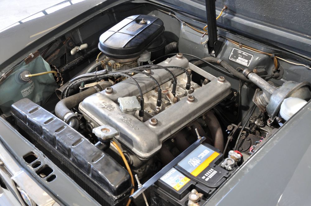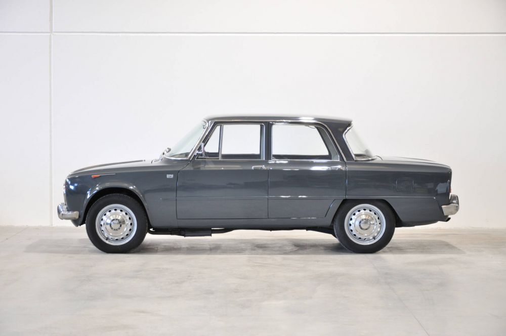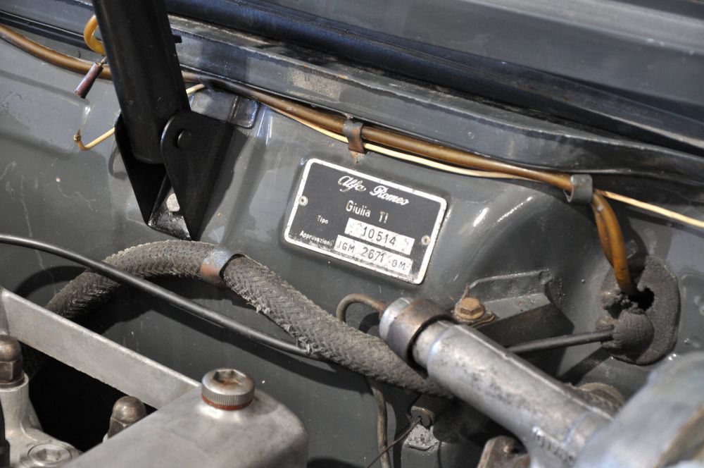 Alfa Romeo Giulia TI 105.14, prima serie, motore 1600 tipo AR00514 originale con carburatore Solex, freni a disco, cambio al volante a 5 rapporti, strumentazione a nastro, versione 6 posti con panca anteriore. La prima, vera, Giulia come nacque ormai più di 60 anni fa!