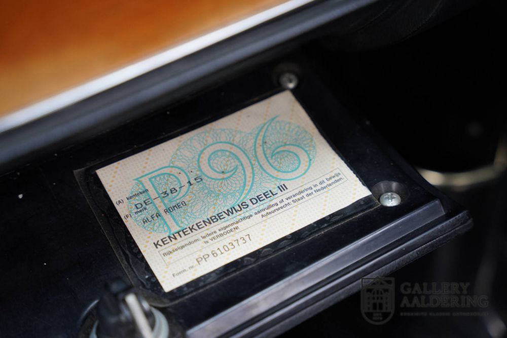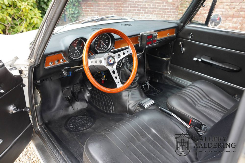 That sporty use is then combined with the 1,290 cc measuring four-cylinder in this GT Junior. Where many peers were equipped with non-original engines, this Junior still has the correct, lively feeling double cam with about 90 hp. The power source was completely overhauled a few years ago by a well-known specialist of the 105 series. The engine is actually virtually new and has actually not been used after this revision. A technically 'like new' Bertone. Where 90% of all Bertones are equipped with a roar pipe, this one even still has the rear silencer. Switching is done via the pleasantly shifting five-speed gearbox, which does its job very smoothly. The underside is also completely without defects and looks very solid and fresh.